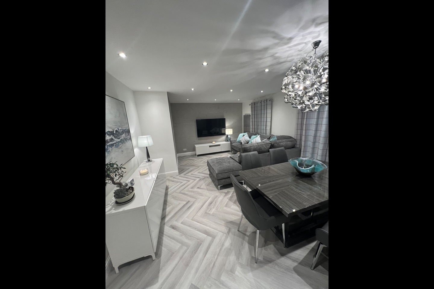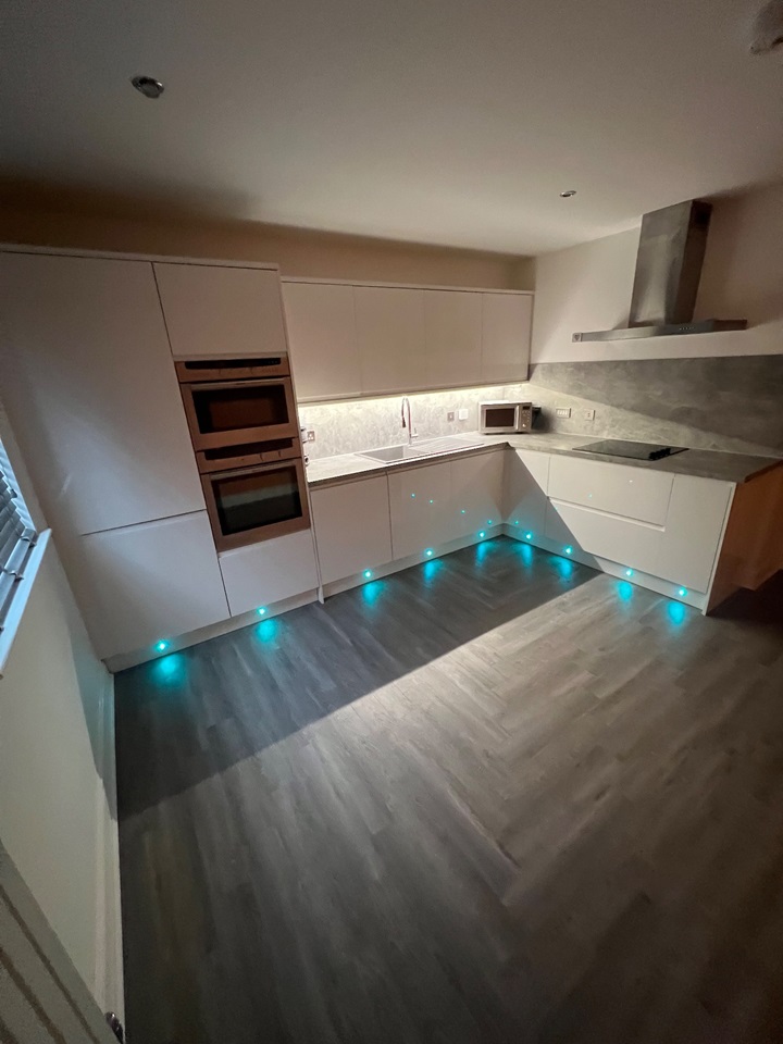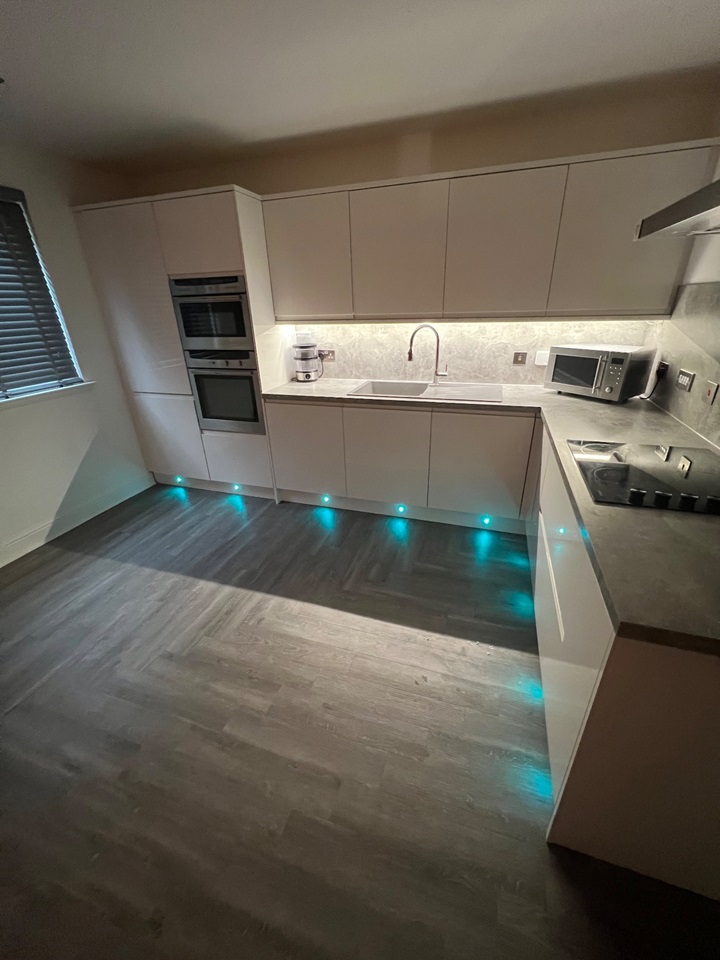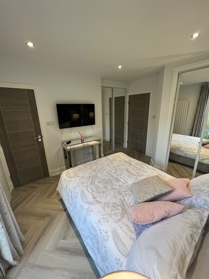 The property comprises; entrance hallway with storage cupboards and video phone secure entry system; lounge with L-shaped sofa, wall mounted TV and extendable dining table; kitchen with white high gloss units with integrated fridge freezer, dishwasher and washing machine; two double bedrooms, both with wall mounted TVs, built in mirrored storage, and one with en-suite shower room.