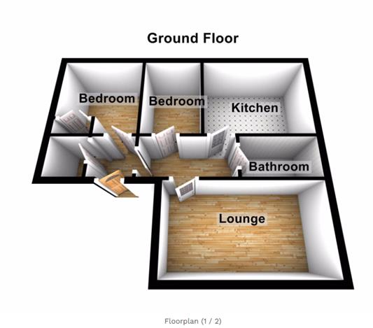 The accommodation on offer comprises; entrance vestibule with good sized cupboard; and long hall laid with new laminate which carries through to the living room and kitchen. The living room is front facing, and is of great size, boasting room for both living and dining furniture. The kitchen is modern in décor and again a good size, fitted with white wall and base cabinets with a contrasting work surface; The two bedrooms are both double, one of which benefitting from a built in wardrobe. Completing the accommodation the recently renovated bathroom is fitted with a chic white 3 piece suite, including an over the bath shower unit.