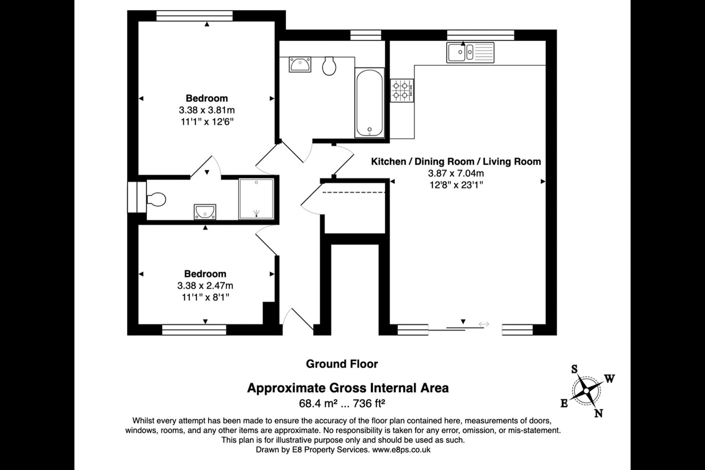 - 2 bedrooms