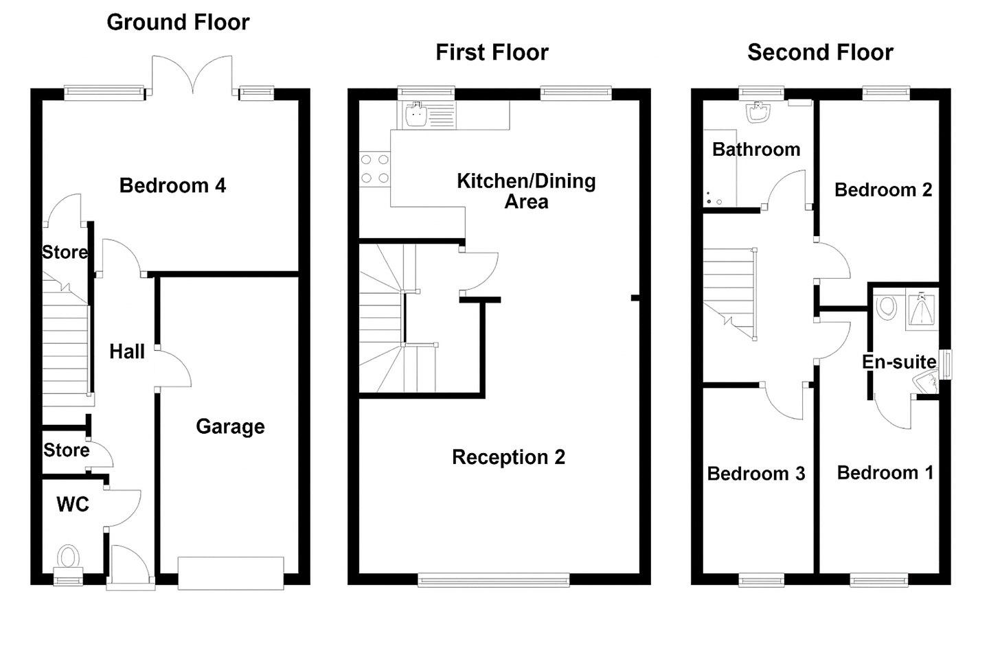 The main bedroom is complete with an en suite bathroom for added luxury. Three further bedrooms provide ample space for family, guests, or even a home office.