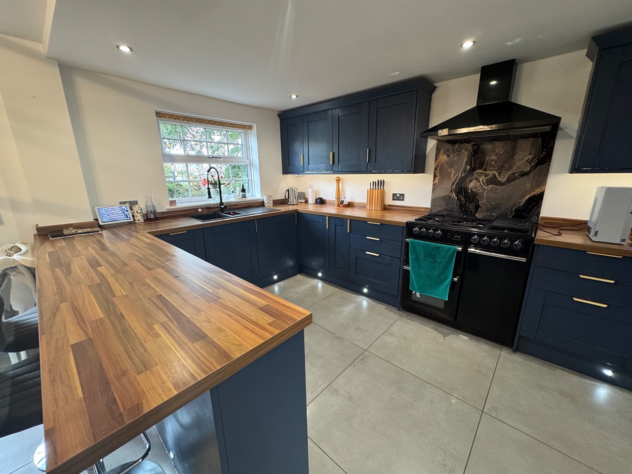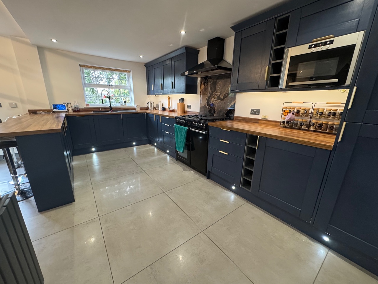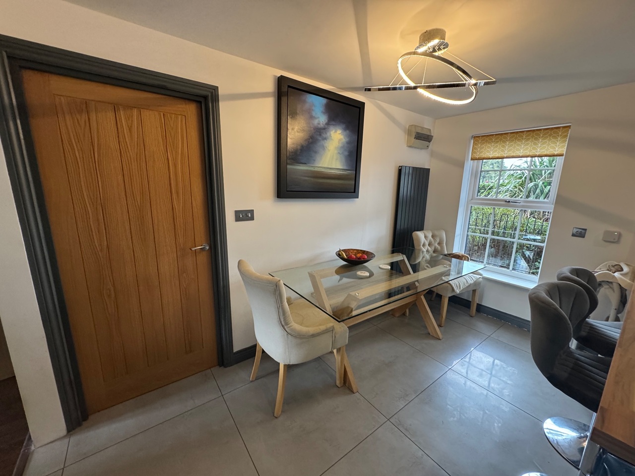 Comprising of a cosy lounge, with built in media unit, which opens out to a beautiful low maintenance courtyard garden with pond. The lounge can become part of a beautiful open plan living space through modern folding glass days leading to kitchen & dining room space.