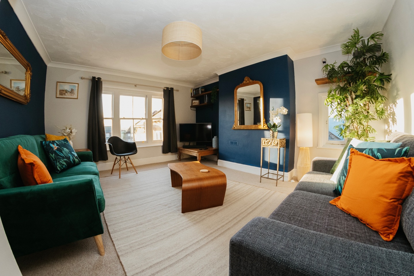 * Bright & spacious living area ideal for relaxing or working remotely