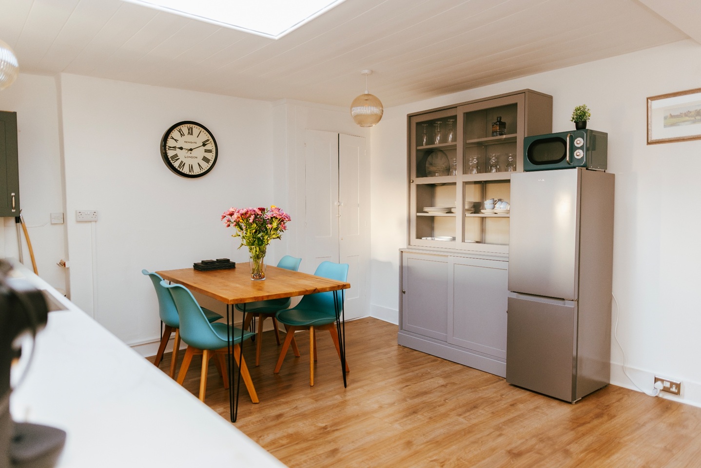 The dining table fit comfortably within the kitchen and seats 4 people easily. It's ideal for a sit-down meal in the evening or a quick breakfast to start your day.