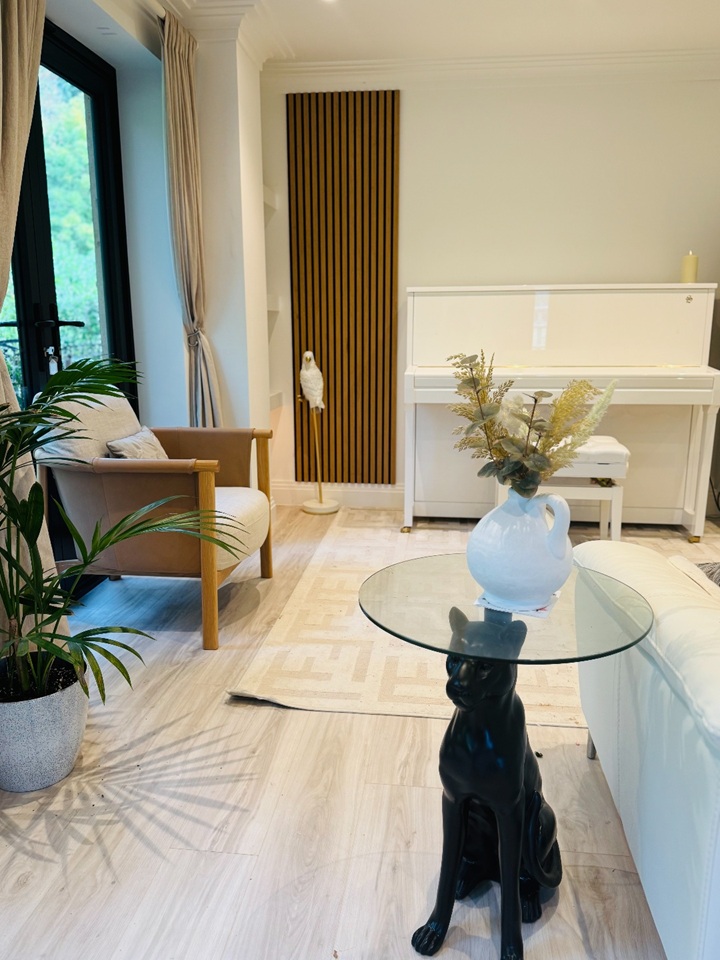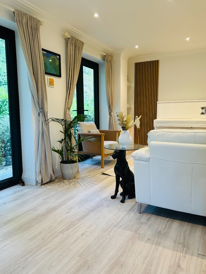 一楼设有温馨的接待室,与明亮宽敞的开放式餐厅相连,是轻松家庭生活和招待宾客的理想之选。法式落地窗直通邻近的牧场,为室内引入充足的自然,并可欣赏宁静的田园风光。