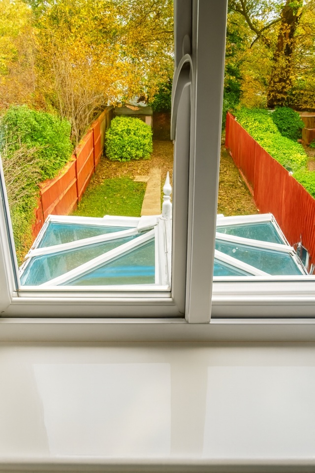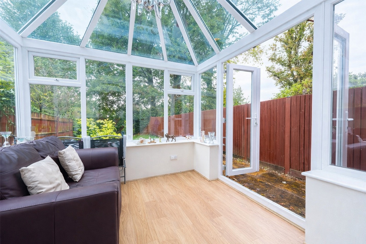 Conservatory opening onto a west-facing garden