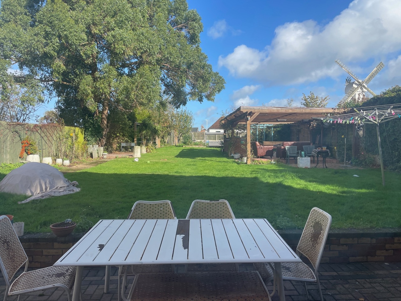 - There’s a massive rear garden with a huge covered area for hobbies/ reading etc.