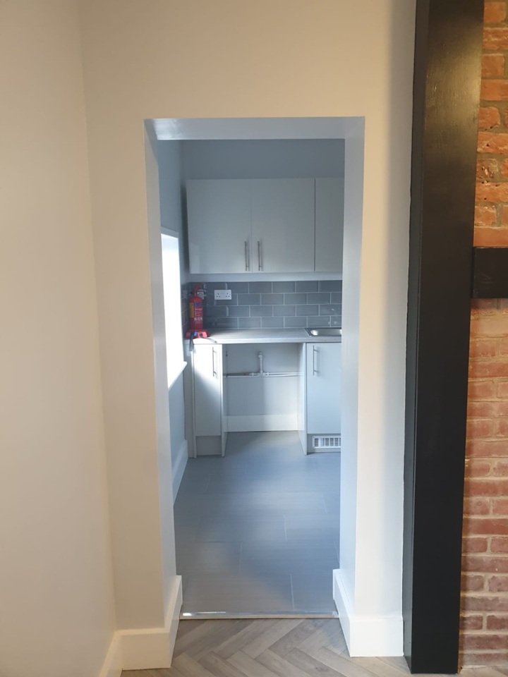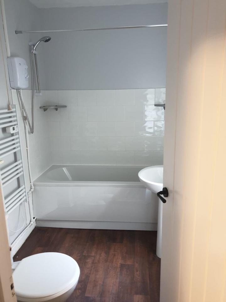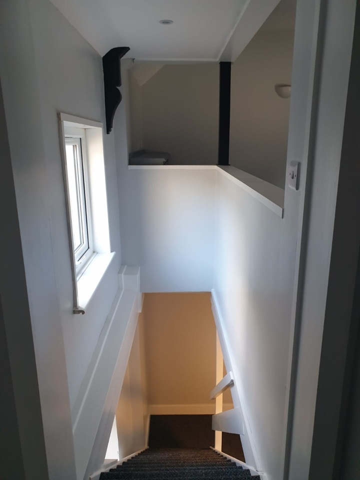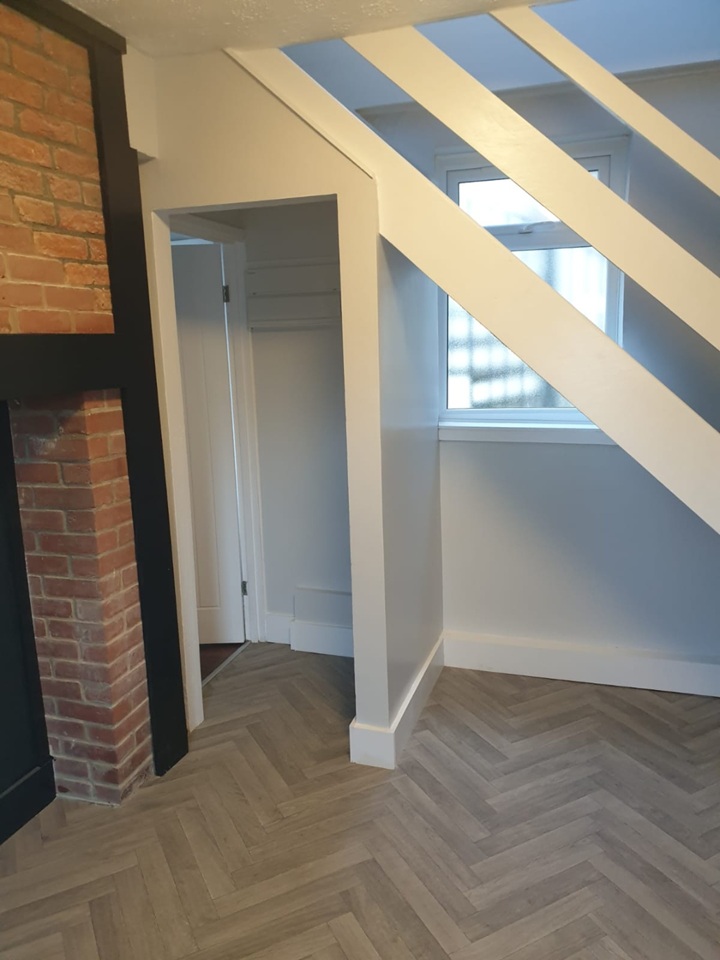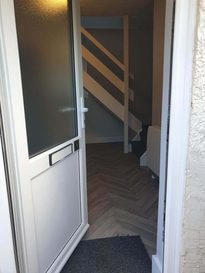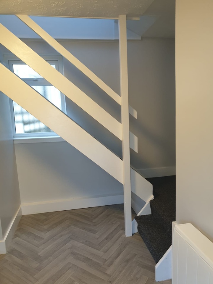 The front door enters into a small dining area, kitchen to the left and bathroom situated under the stairs, upstairs has a large living room with natural light coming in from 2 windows.