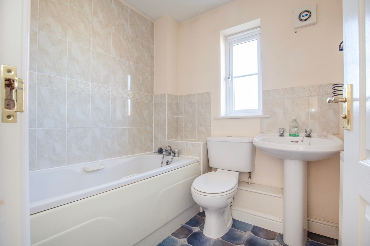 Stairs lead from the hall to the landing with two bedrooms and a family bathroom with bath, (hand held shower), toilet and washbasin