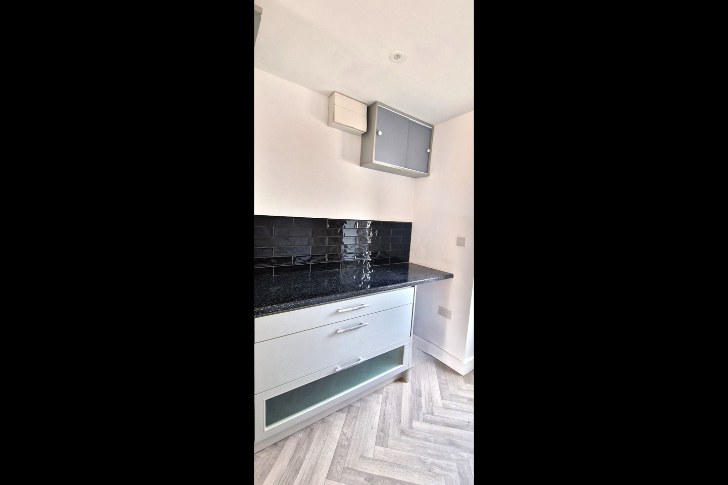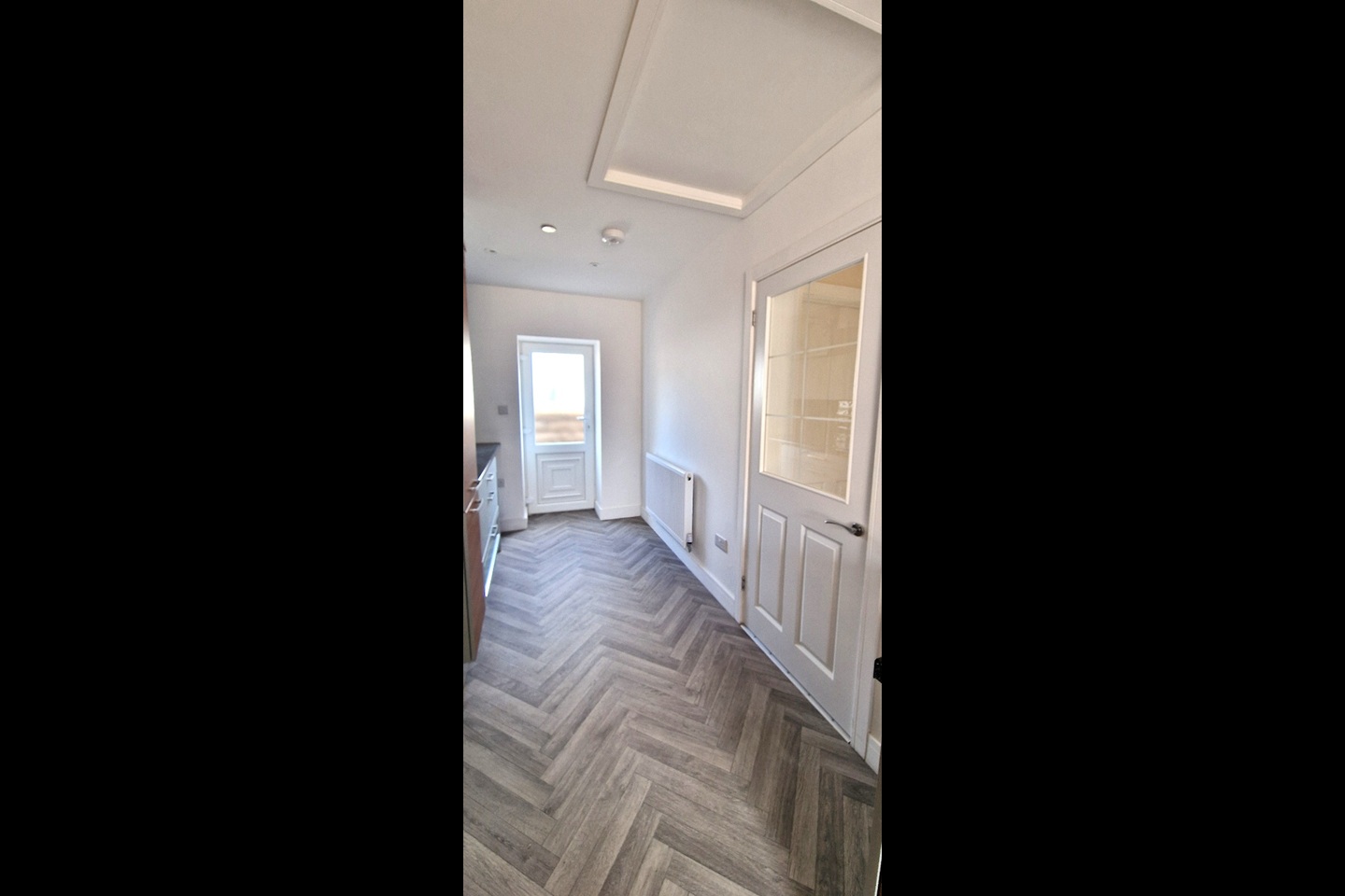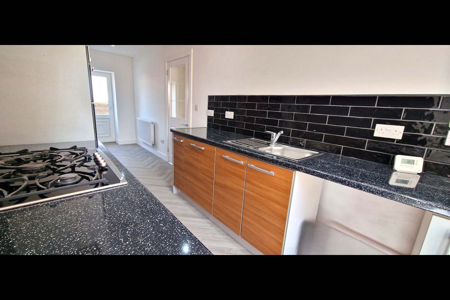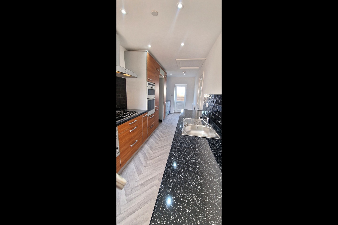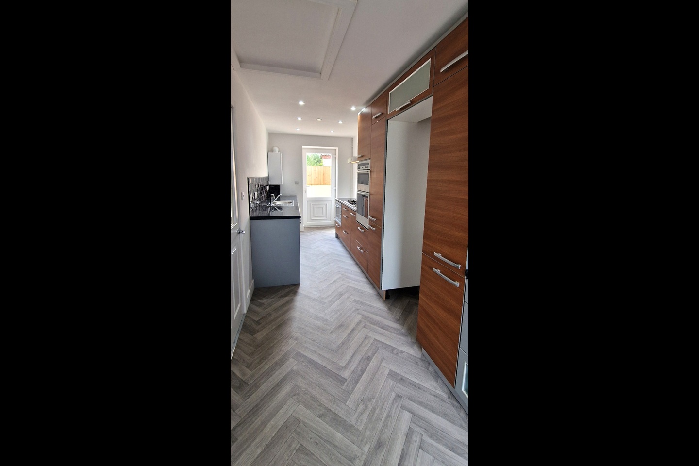 Fully fitted kitchen with integrated oven, hob and dishwasher