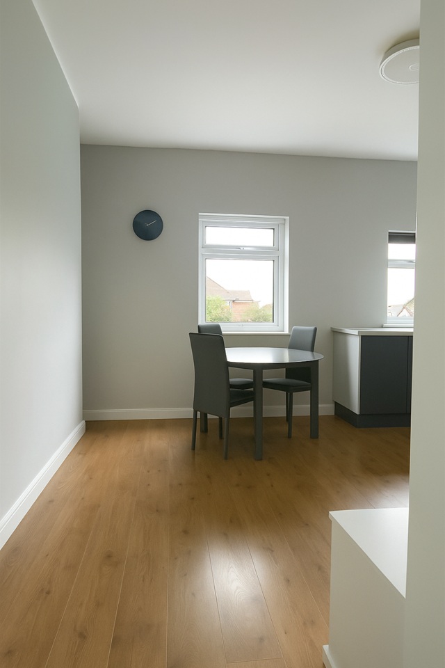 • Spacious and bright lounge with room for a sofa and dining table