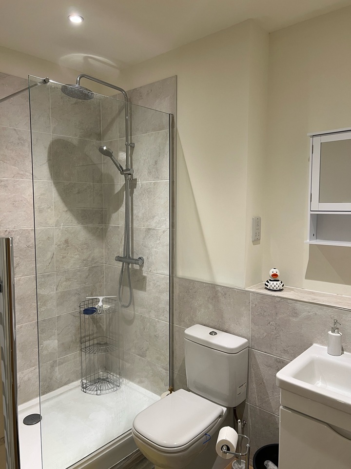 You’ll have access to a spacious shared kitchen/living area with desk space for work and all essential appliances included. The shared bathroom has a large shower and plenty of storage.