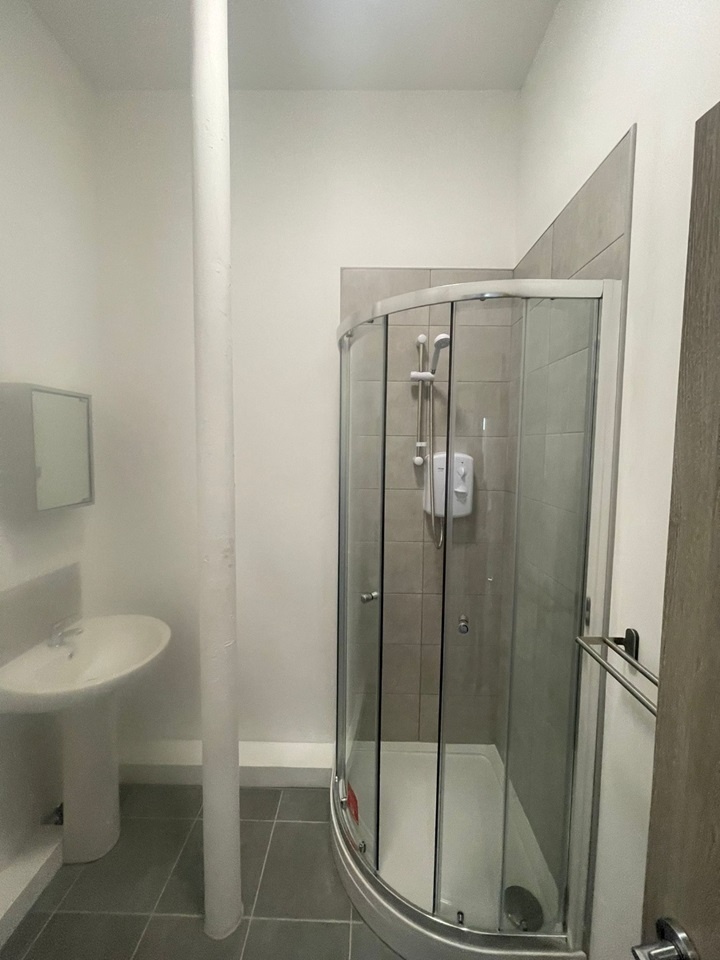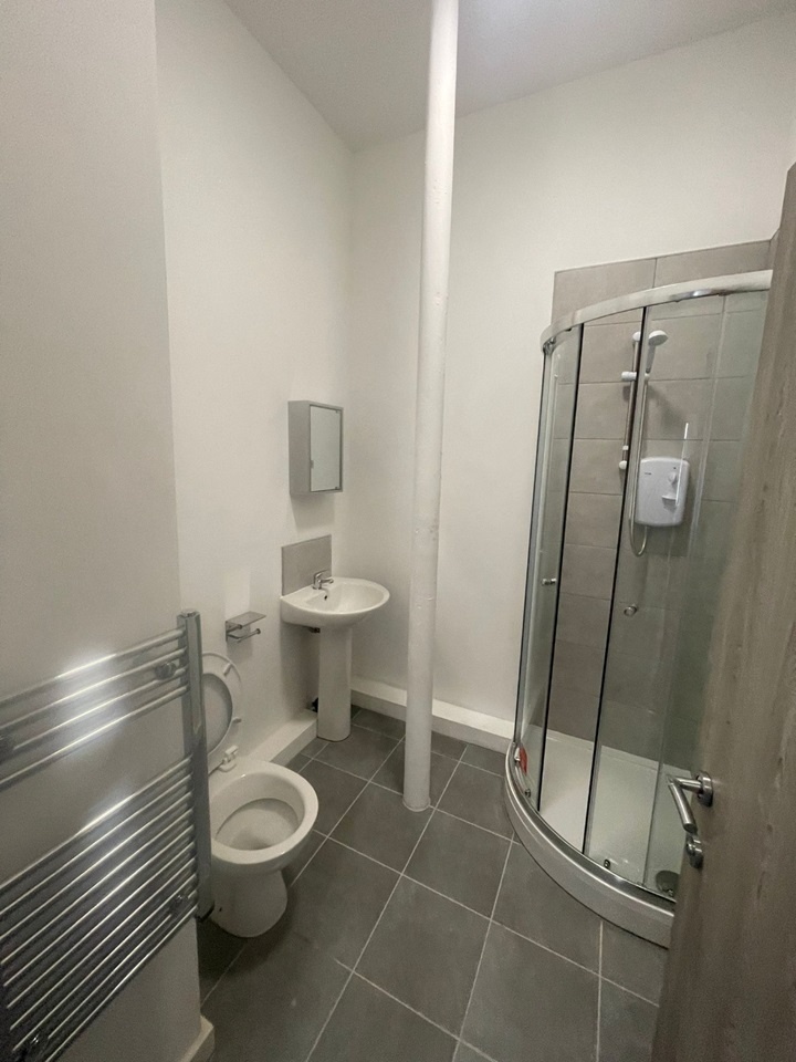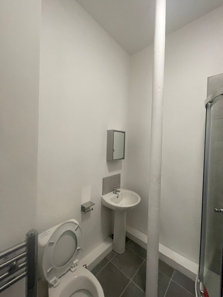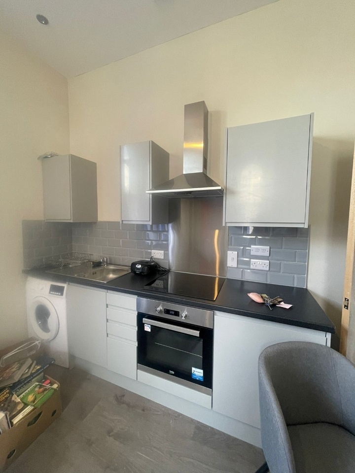 There is 1 bedroom as well as wardrobe. The kitchen and bathroom are BRAND NEW. The kitchen includes a bar stool, a sink, a wash and fully functional oven including hobs as well as an extractor fan. The bathroom is made up of a toilet, sink and shower.