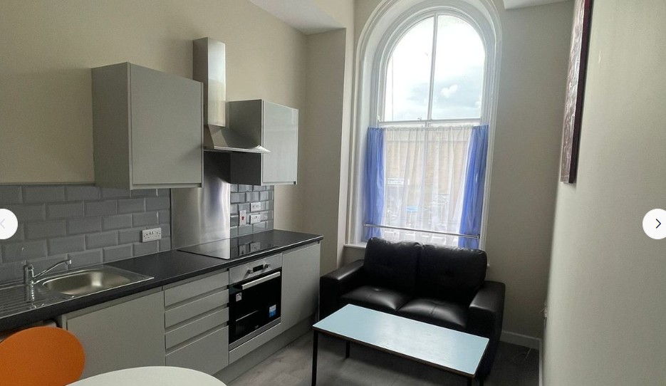 There is 1 bedroom as well as wardrobe. The kitchen and bathroom are BRAND NEW. The kitchen includes a bar stool, a sink, a wash and fridge-freezer