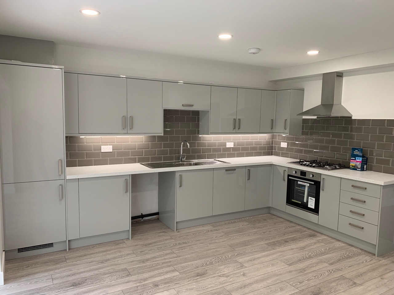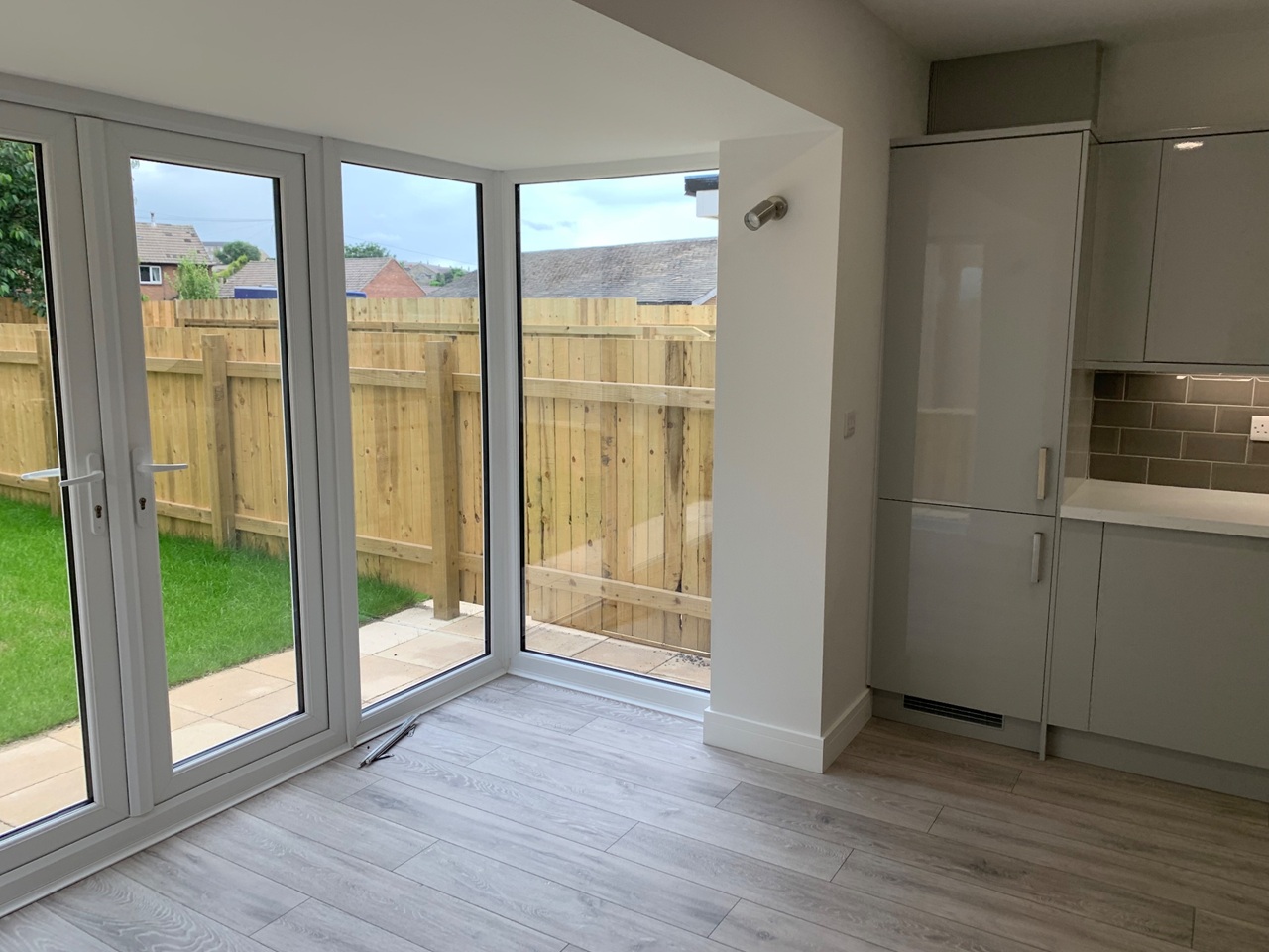 The property features a bright and elegant living area, finished to a high standard and ideal for both everyday family life and entertaining. The contemporary kitchen and dining space is thoughtfully designed with ample storage and worktop space, creating a welcoming hub for family meals and gatherings.