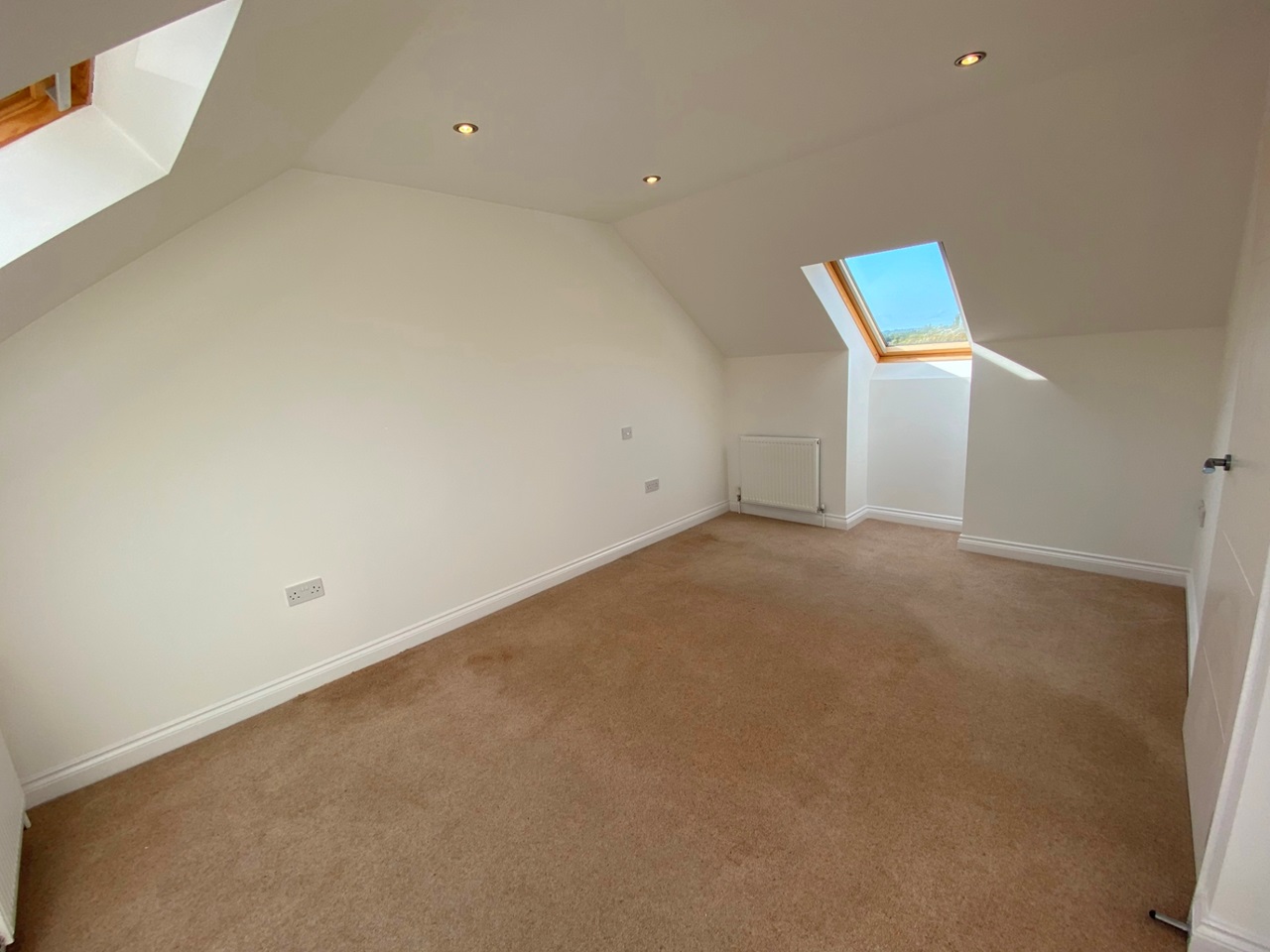 A well-proportioned second bedroom with Velux window, 2 loft hatches with storage space, and modern fitted wardrobe included.