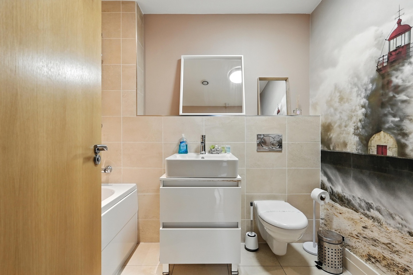 ⭐ 𝗠𝗼𝗱𝗲𝗿𝗻 𝗕𝗮𝘁𝗵𝗿𝗼𝗼𝗺: Hot water on demand, bath, mirror, complimentary towels, and hair dryer. First bathroom contains a shower and bath, and the ensuite bathroom contains a shower.
