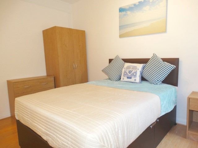 The room is fully furnished with small double bed, wardrobe and bookcase.