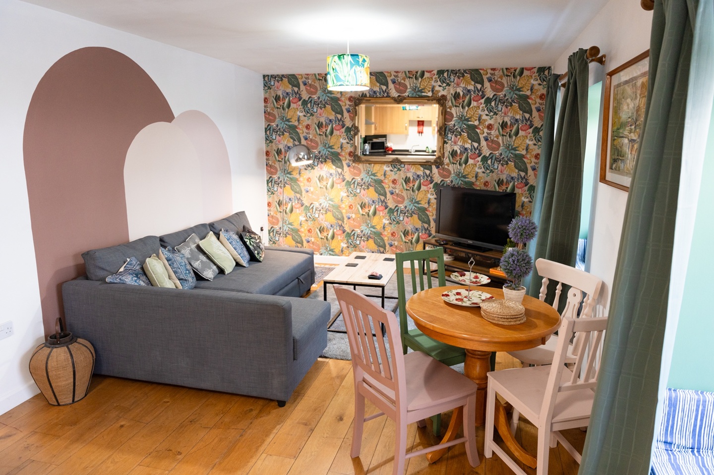 The annexe is attached to our family home but has a separate entrance and is fully self-contained. While it overlooks the garden, privacy screens ensure a peaceful and independent space.