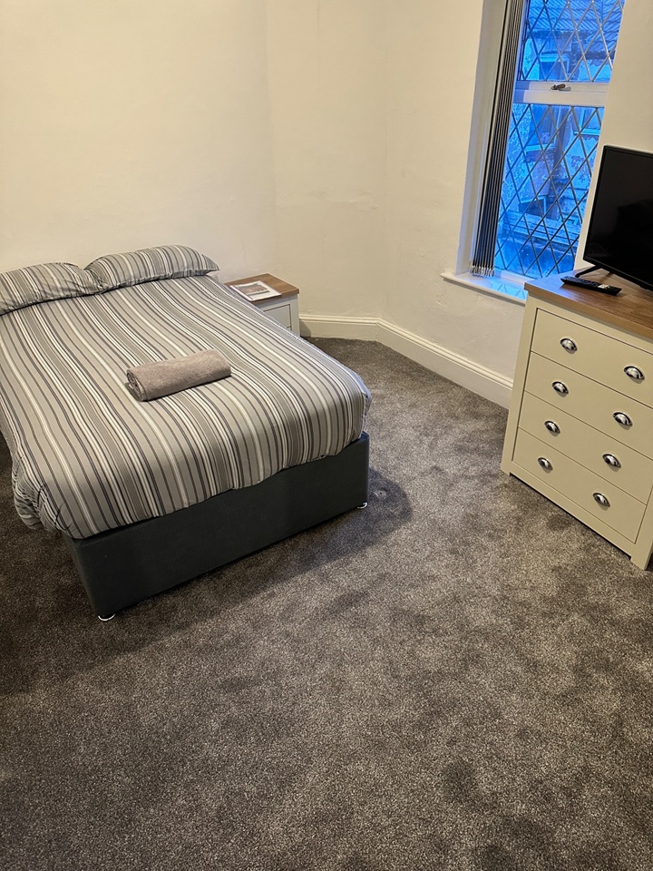 All rooms come furnished with either a double or king size bed, wardrobe, drawers, night stand, Smart TV and mirror. Fully carpeted throughout.