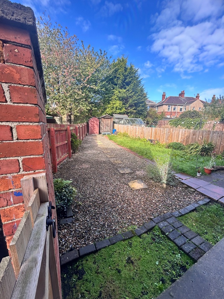 Shared westerly facing back garden and outdoor storage