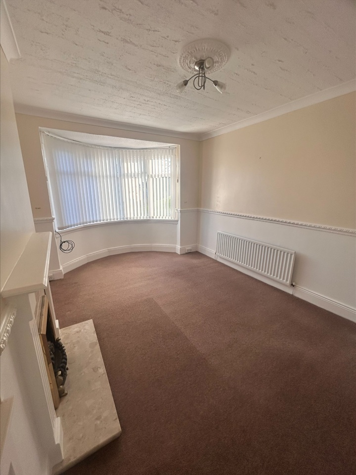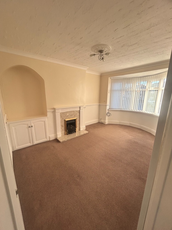 Generous sized living room with bay window and feature fireplace
