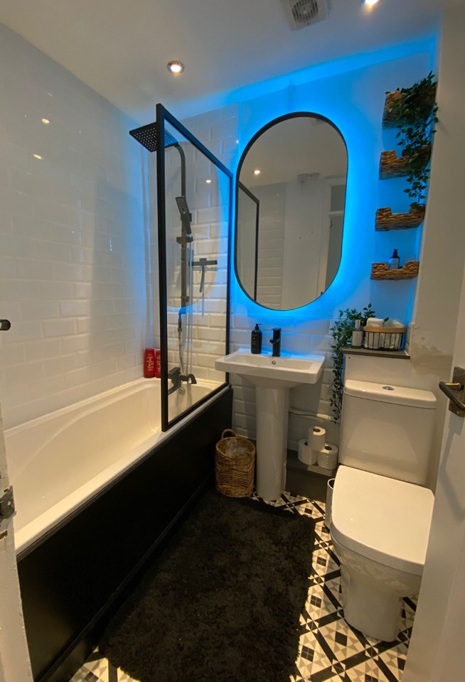 Externally there is a private south facing rear garden with rear access to the property and a grassy area to the front of the home.
