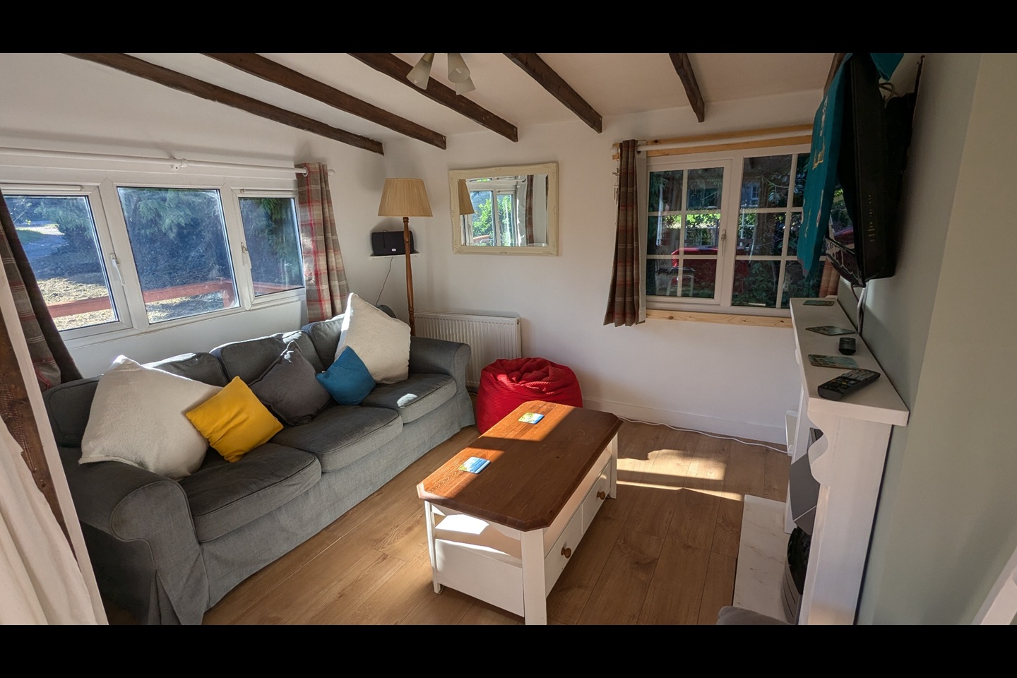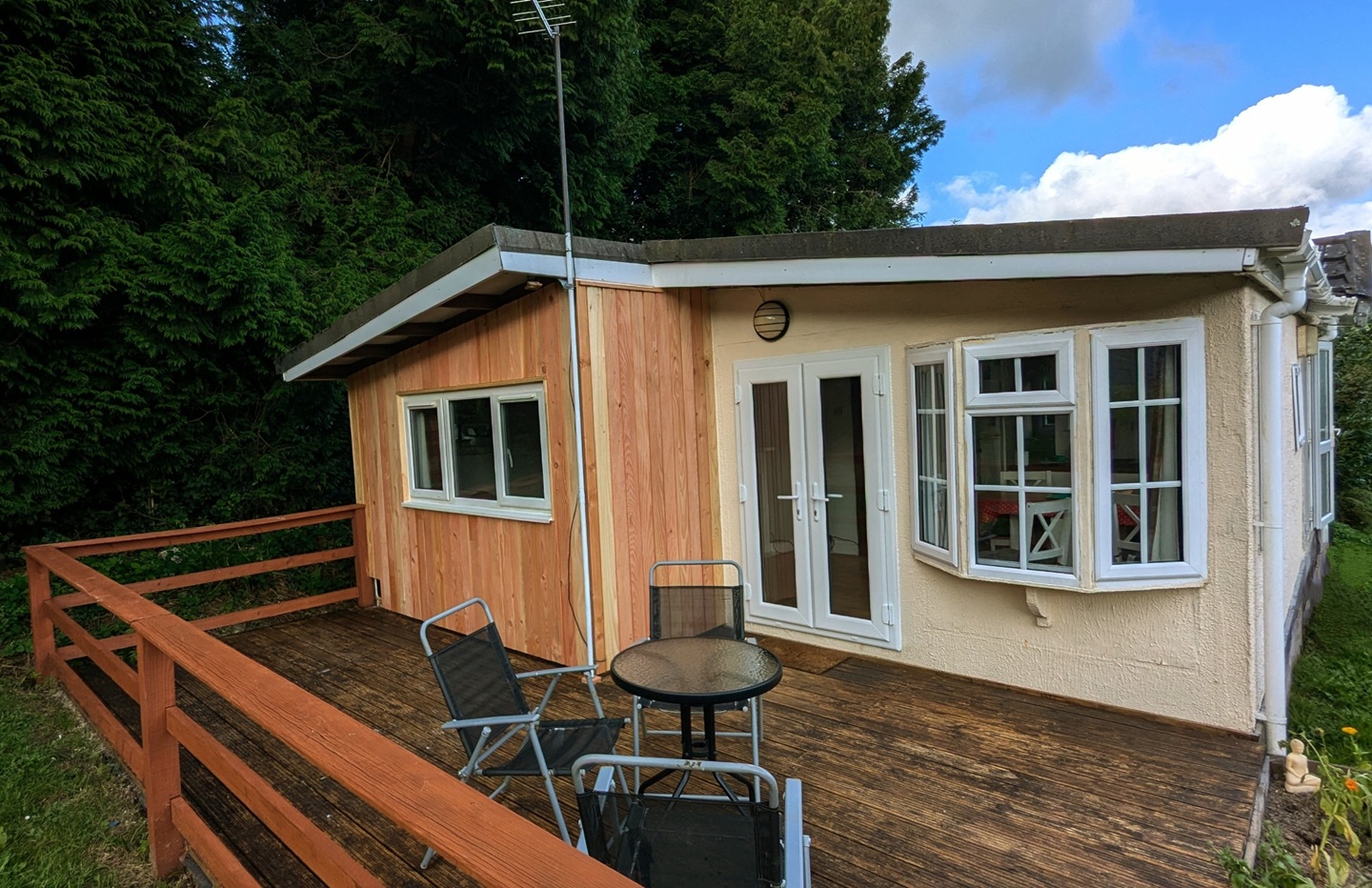 The home has an open plan kitchen/dining/lounge area. The main bedroom (9ft sq) has a double bed and caravan style built-in wardrobes. The bathroom has a shower over a bath. The living area has a patio door which opens out to a private decking area and garden