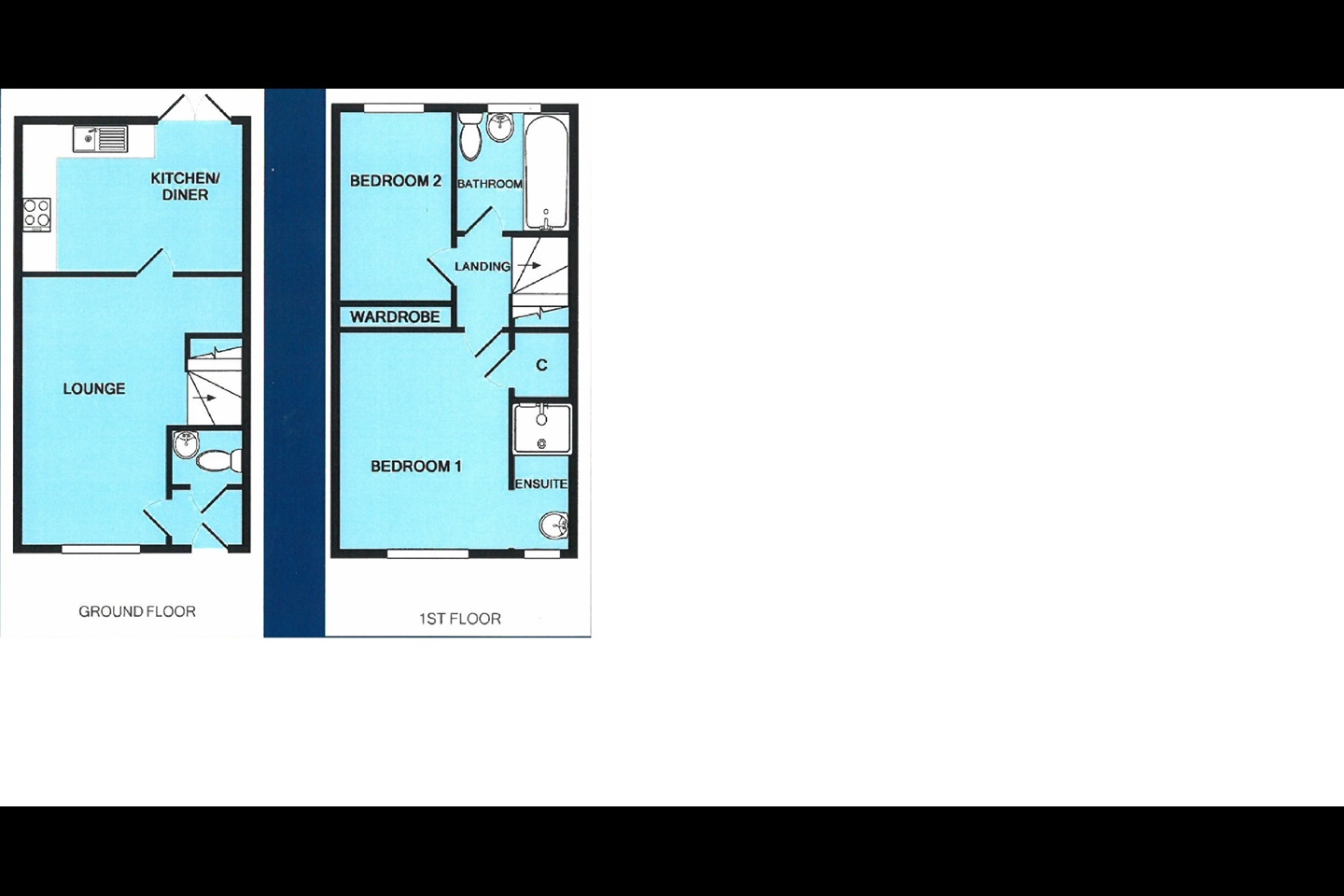 Accommodation comprises; entrance hallway with door to the cloakroom which is fitted in a white suite. The living room offers a front aspect bay window and stairs to the first floor landing. The kitchen breakfast room is fitted with a modern range of units and sliding patio doors provide access to the rear garden. To the first floor there are two bedrooms with an en-suite shower room to the master bedroom plus a set of fitted wardrobes. There is a separate family bathroom fitted in a white suite.