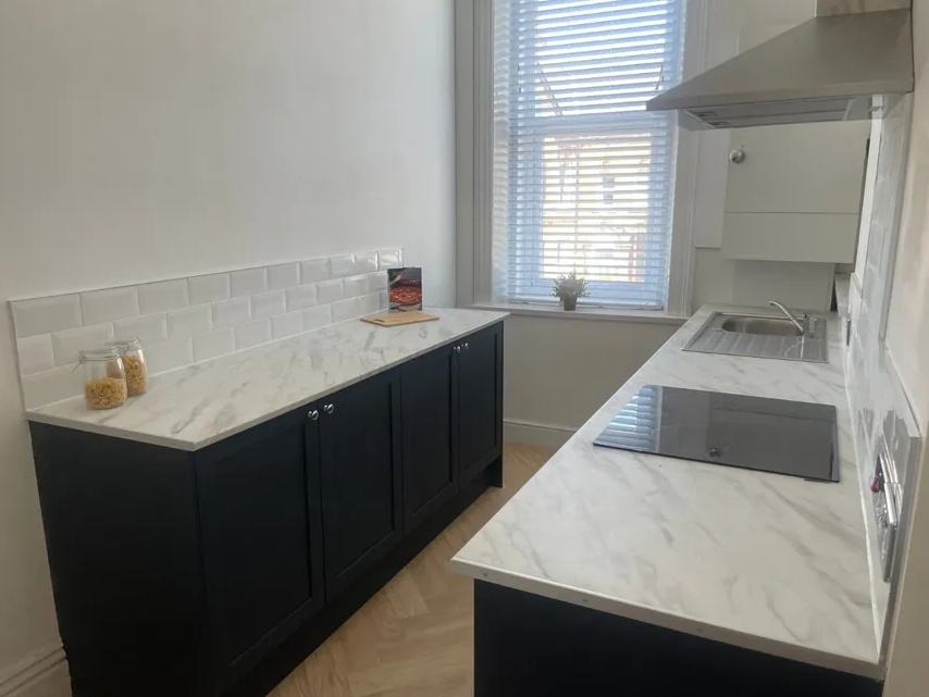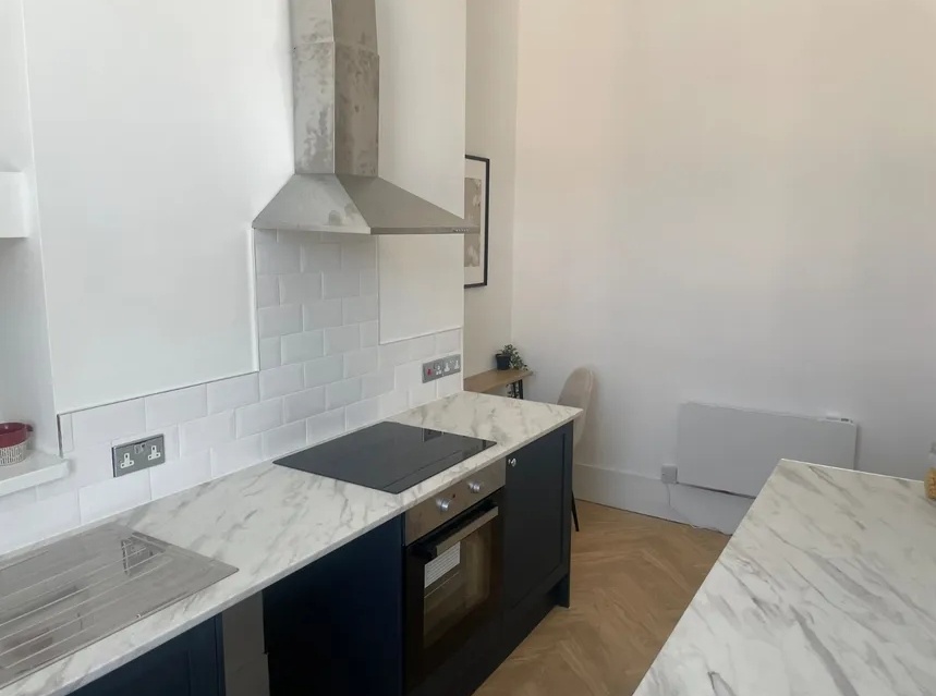 There is a brand new kitchen with cooker and hob, and plenty of cupboard space to stock up on all those Gordan Ramsey recipe ingredients (or pot noodles if you'd prefer).