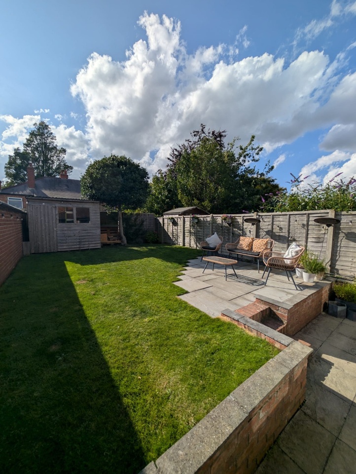 + Private, west facing garden with grass and paving