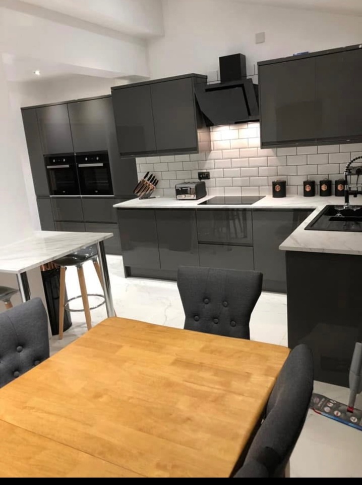 - Bright and airy open-plan L-shaped kitchen and dining area, perfect for entertaining