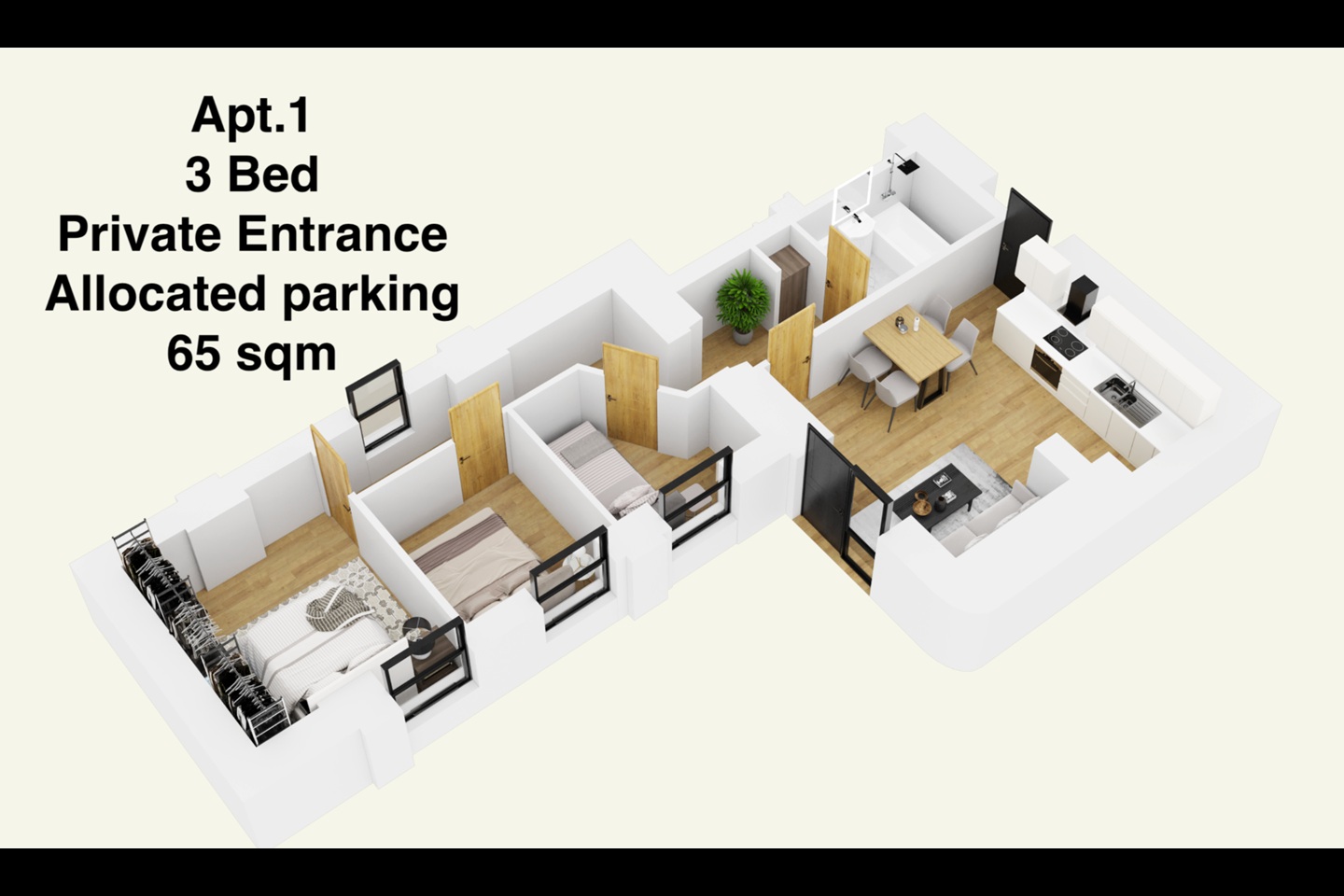Apartment 1 - PRIVATE, DIRECT ENTRANCE WITH ALLOCATED PARKING DIRECTLY IN FRONT.