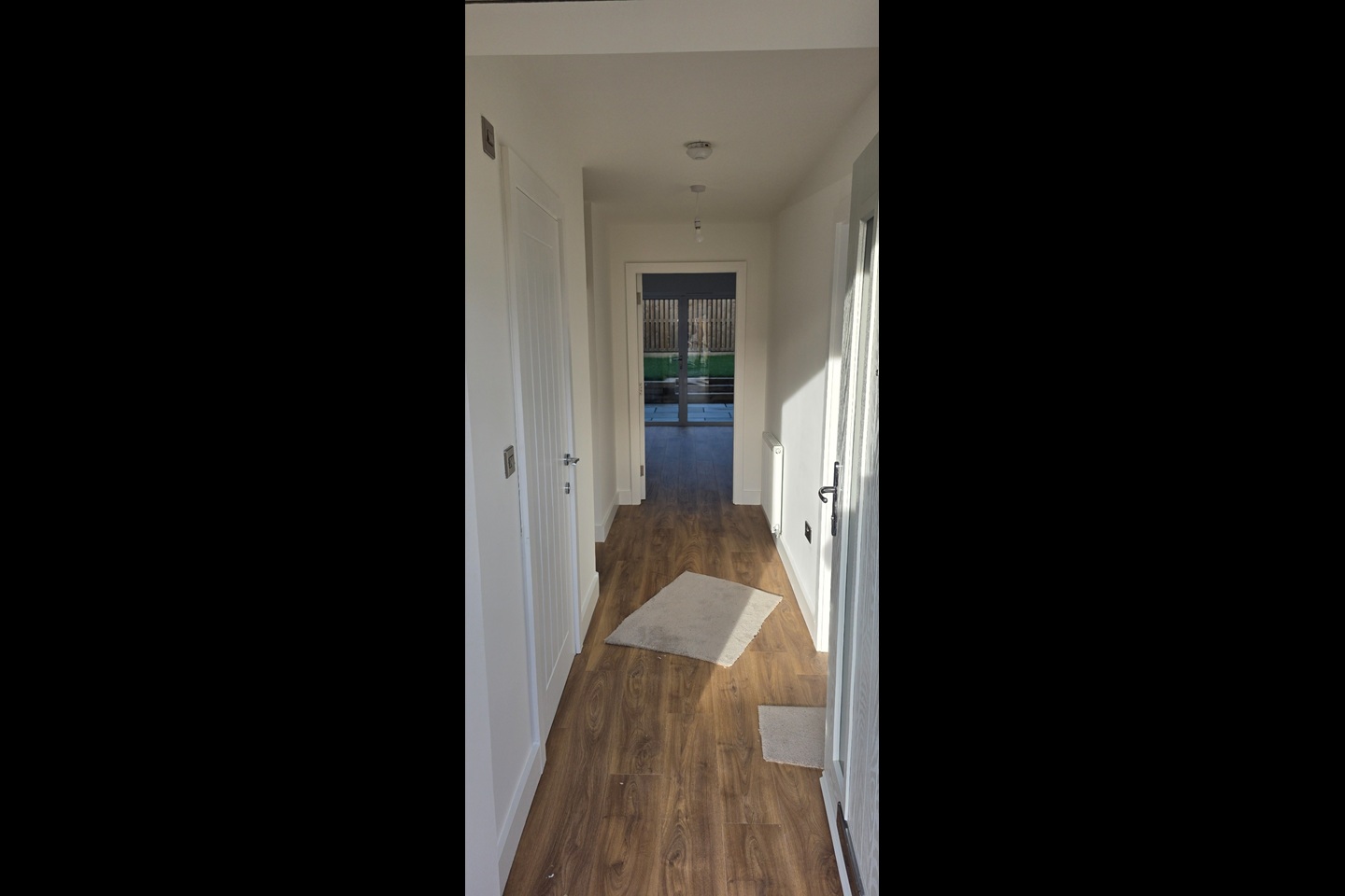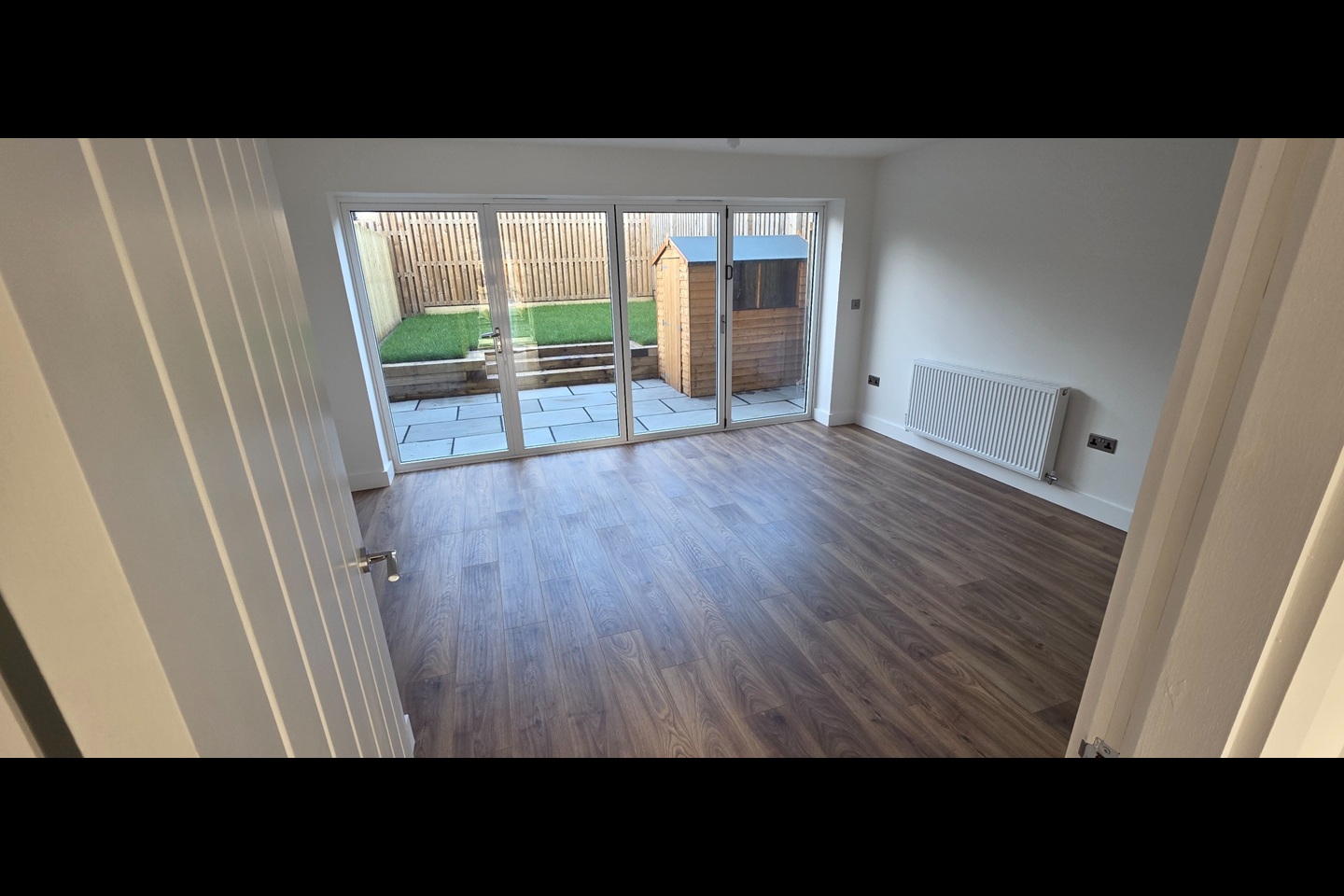 To the right is a closed kitchen and forward leads into the light and spacious open plan living space with eye catching Bi Fold doors overlooking the private garden, which has a brand new garden shed.