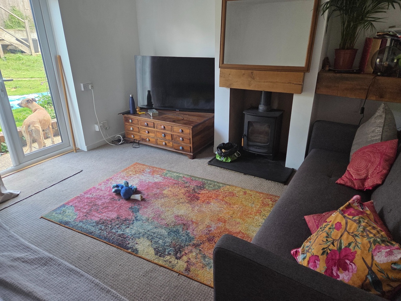 I work Mon-Fri, and I chill at home most weekends and evenings, occasionally having family/friends to dinner or to stay (I have dbl sofabeds in the living room) and am happy for you to do the same - just not all the time! I like to cook, chat about life, and current affairs though I'm just as happy talking about Madonna or Kylie or RHOBH! I'm left- wing, anti Brexit and anti-Tory, I'm afraid. I love a glass of wine or two at the weekends and am as comfortable socialising as I am chilling with Bella in my room. Privacy is important and I'm not looking for new friends though obviously we'd need to get on well to live in harmony and new friends are always nice - peace is super important to me. Bills are low, monthly and divided between us (water £35 /CT - Band D - £203pm I think, G/E - Good Energy £100 approx)
