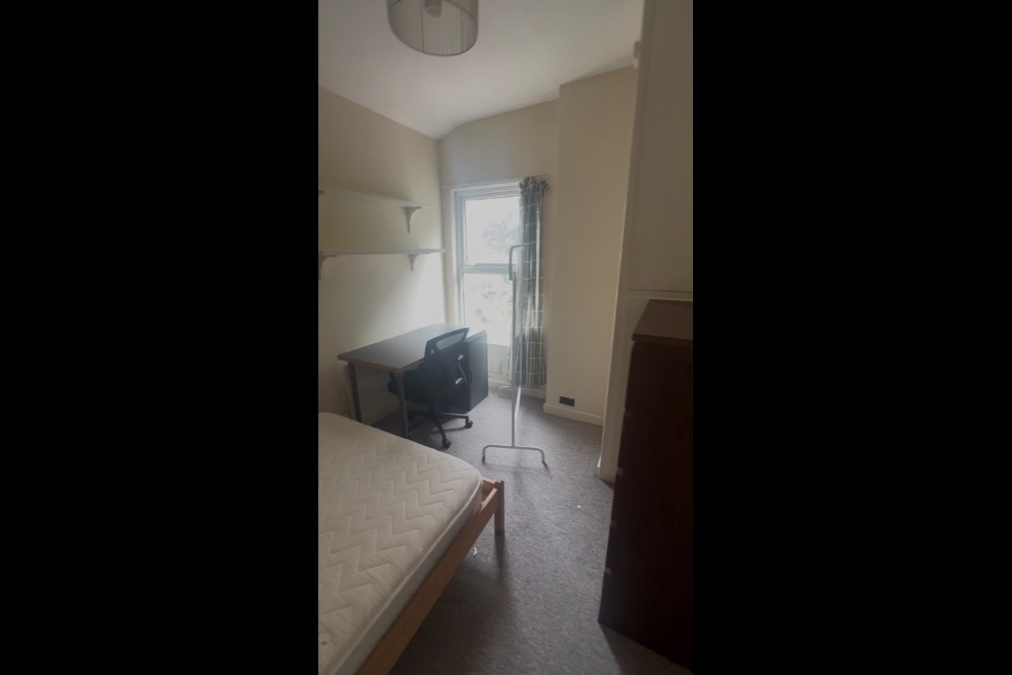 The layout o the house when you walk in is the first room being the living room which is huge, and the stairs are next to it, as you walk down the hallway more on the left is the first bedroom (which is already taken) and then there’s the dining room, kitchen and bathroom at the end of the hall. When you go up the stairs, the first bedroom would be your room, which overlooks the garden. The other two bedroom are left of the stairs, there is also a storage cupboard right outside your room.