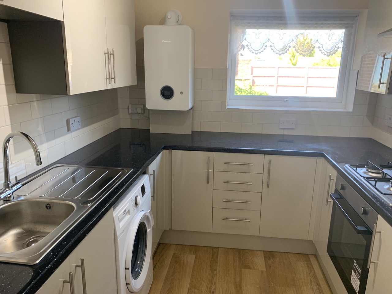 Completely renovated, including a brand new fitted kitchen and bathroom. A spacious, well presented, ground floor flat, with a pleasant aspect, conveniently located within a minute's walk of the town centre & easy walking distance to both mainline stations. Accommodation includes: Communal entrance hall, entrance hall with a built in cupboard, two double bedrooms, dual aspect lounge/diner, new modern kitchen with brand new appliances, brand new fitted bathroom, walk in shower and a fitted cupboard. The property also benefits from allocated parking communal gardens, new carpets, new modern, Gas central heating throughout. unfurnished. EPC Rating C.