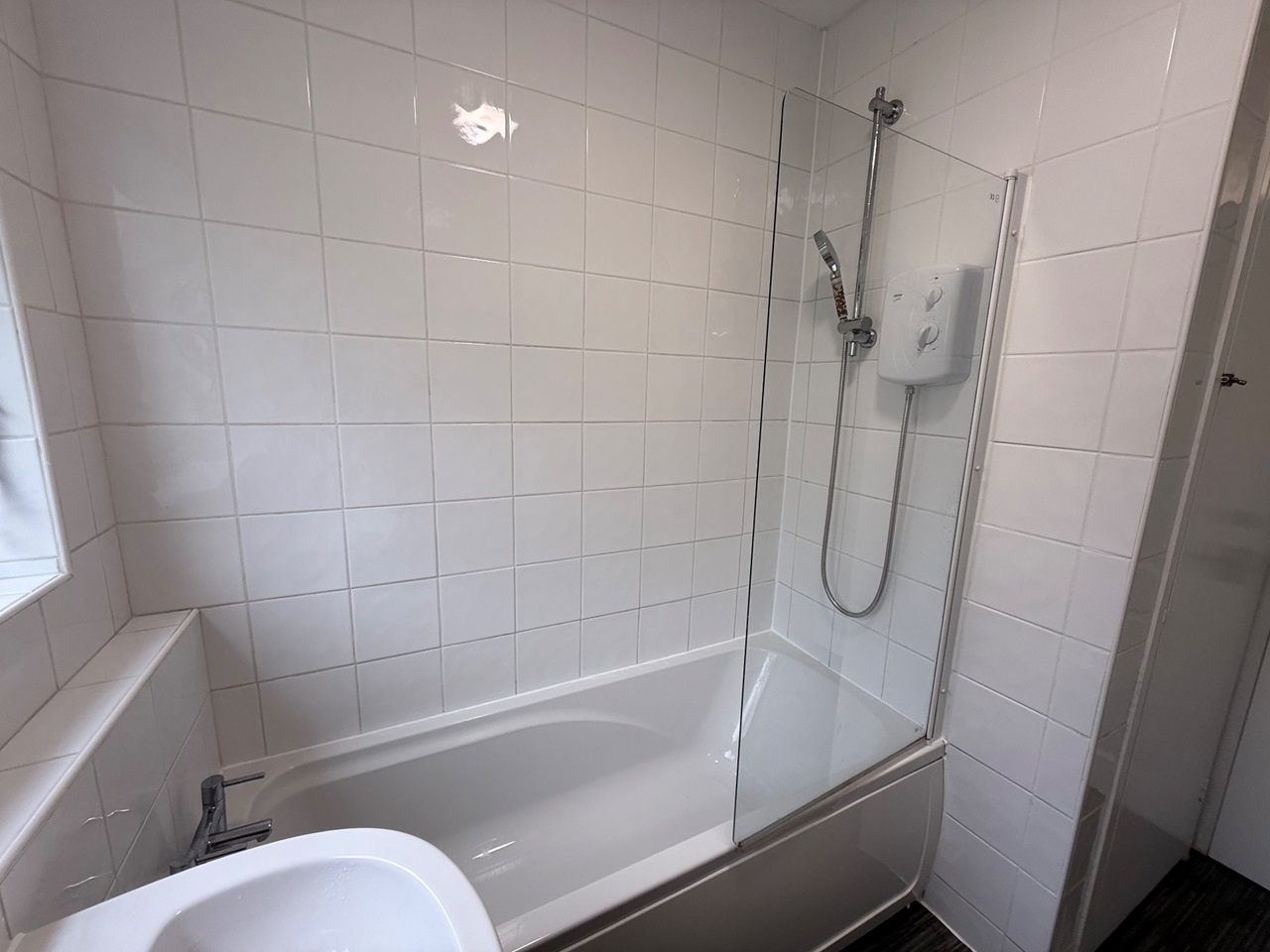 - Bathroom with shower over bath