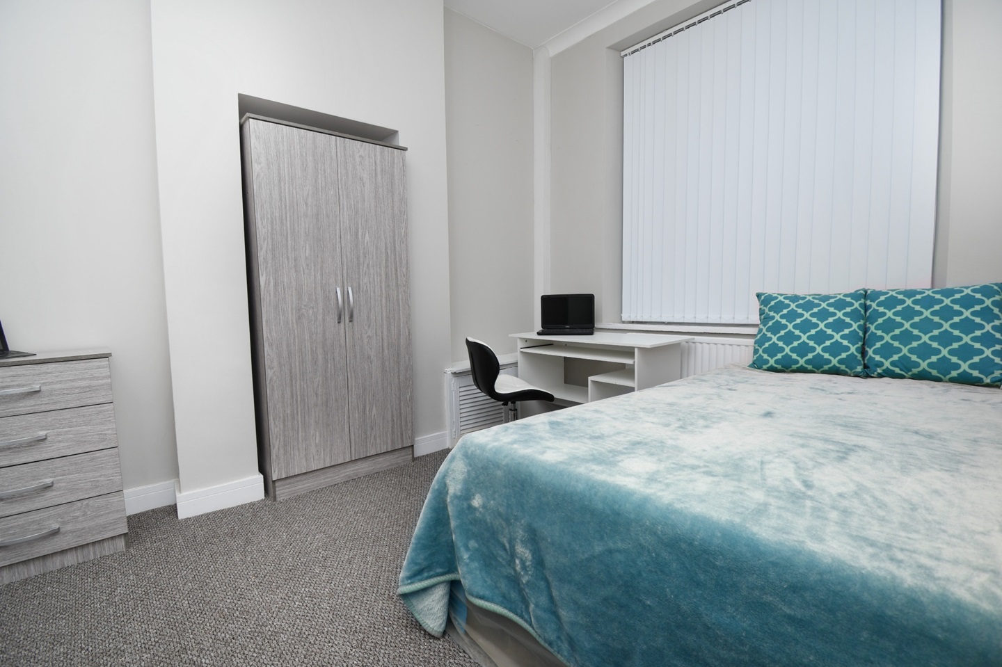The rooms include, double bed, wardrobe, desk, chair, bedside cabinet and chest of drawers.