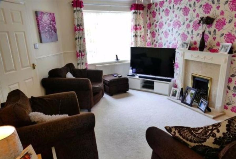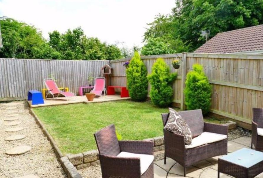 The first floor has three bedrooms, a family bathroom, plus an en-suite to the master. There is double glazing and gas central heating. The rear garden has a lawn and two patio areas for lounging, entertaining and relaxation. It also backs onto recreational fields, giving a lovely backdrop of sky and trees.