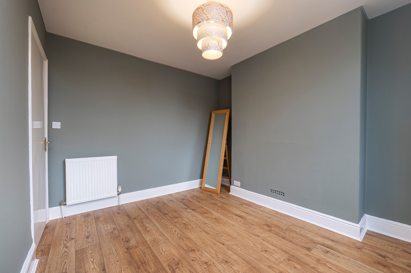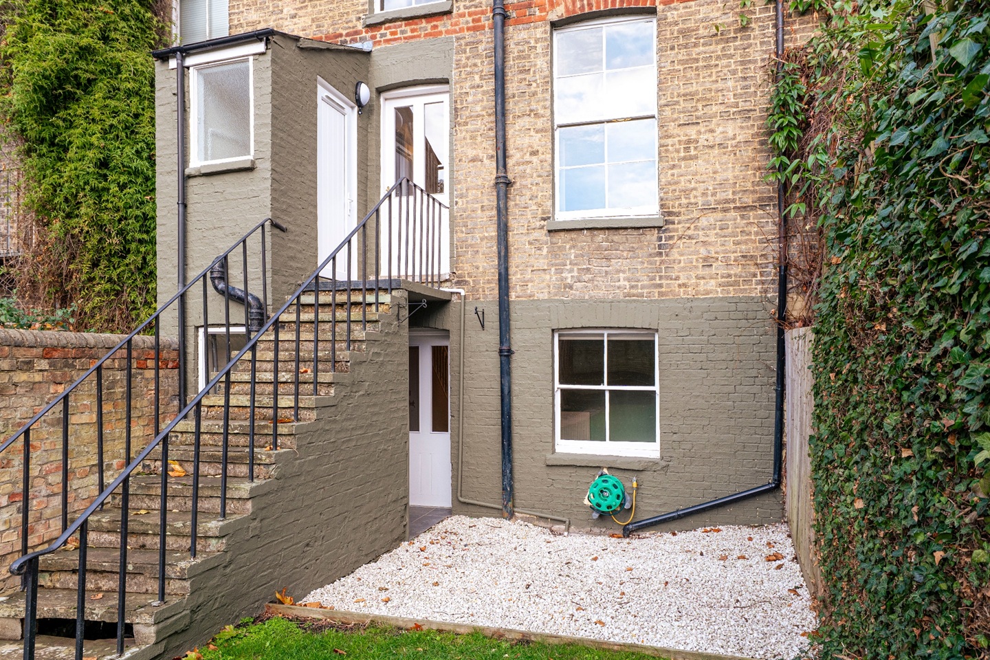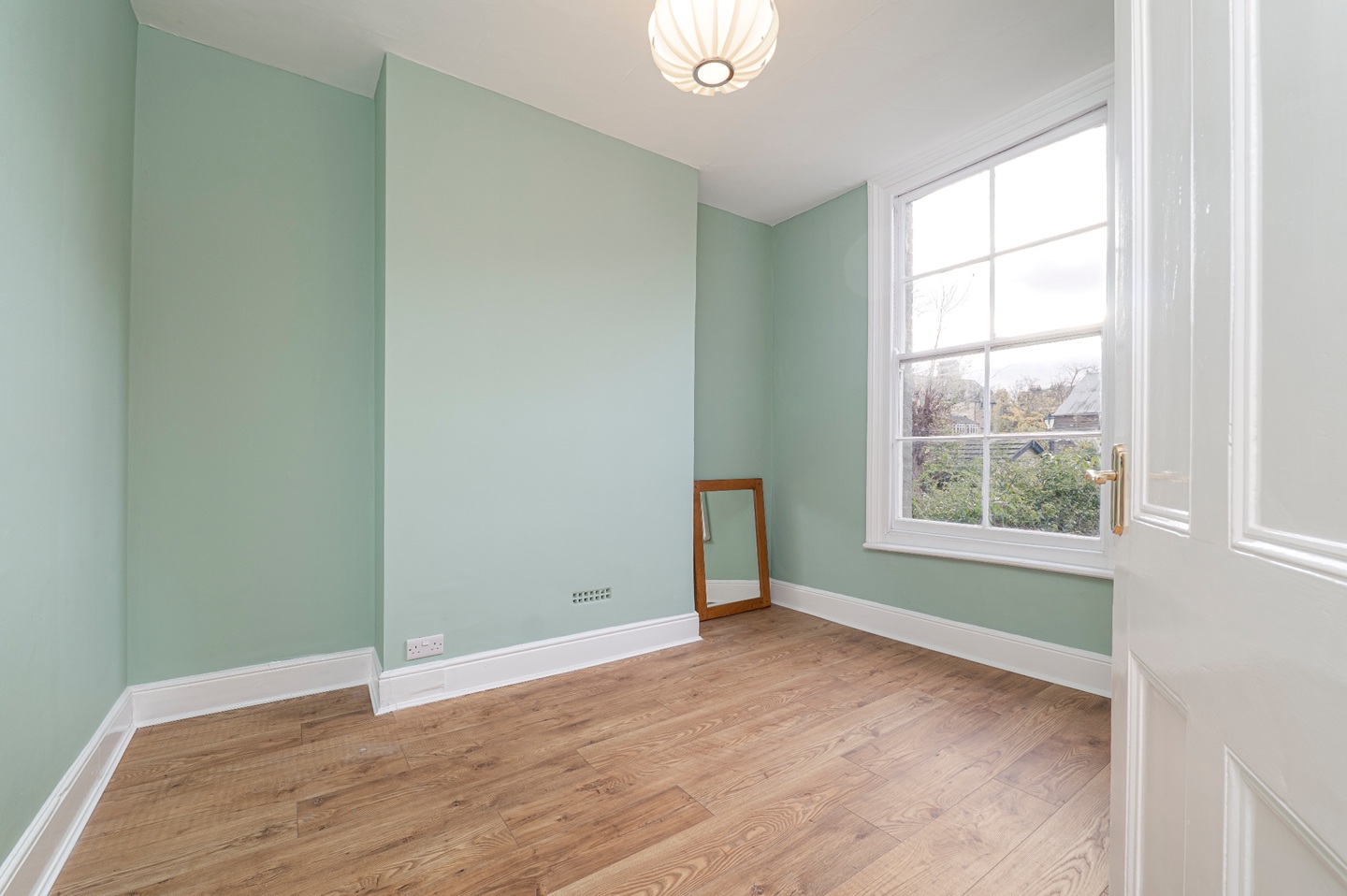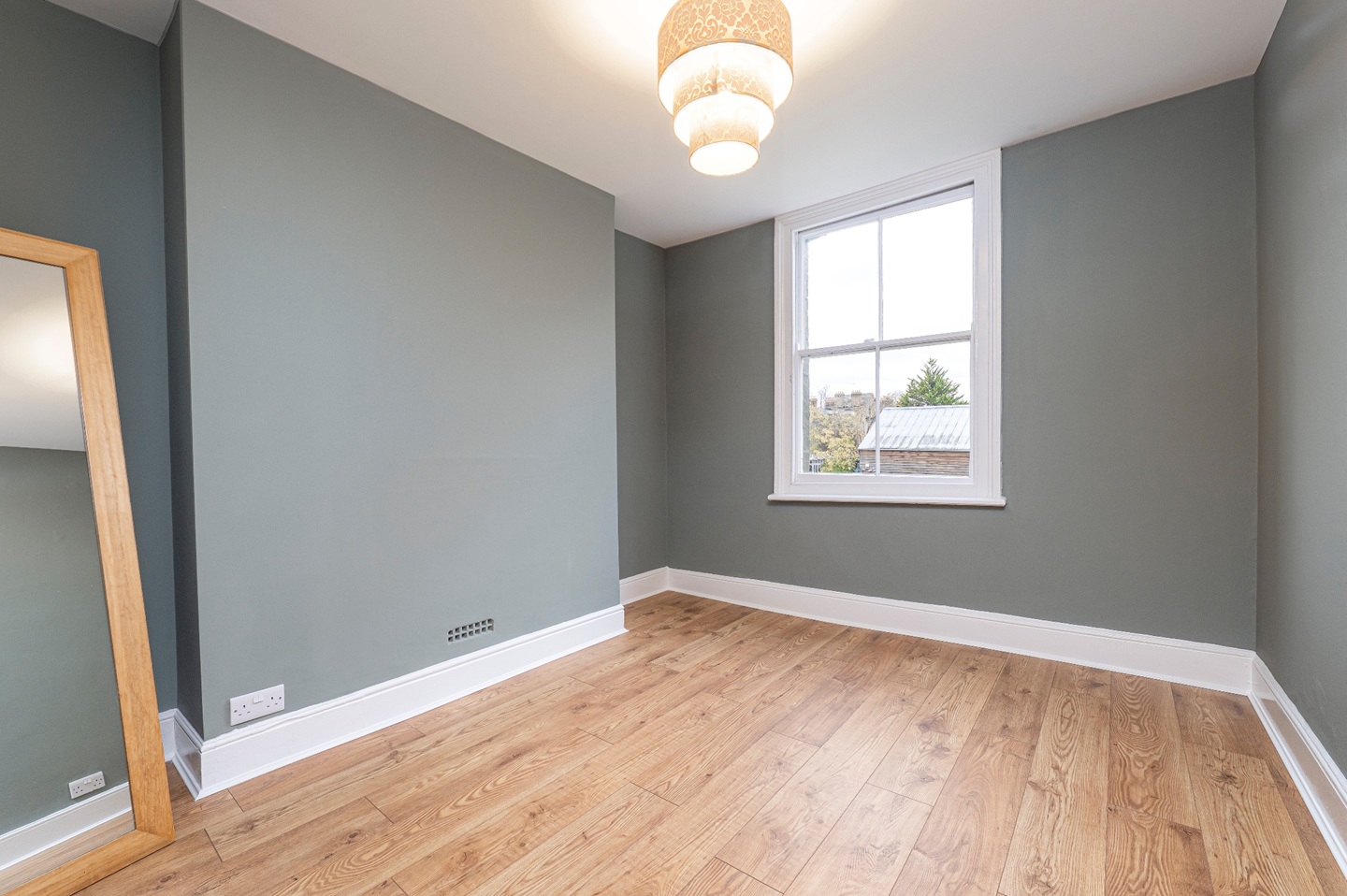 The first floor hosts two comfortable double bedrooms served by a well-appointed family bathroom, complete with a shower, vanity unit and WC. The top floor is dedicated to the principal bedroom, a particularly impressive space with dual-aspect windows providing views over both Carlyle Road and the garden. The room offers space for a dressing area and enjoys an abundance of natural light.