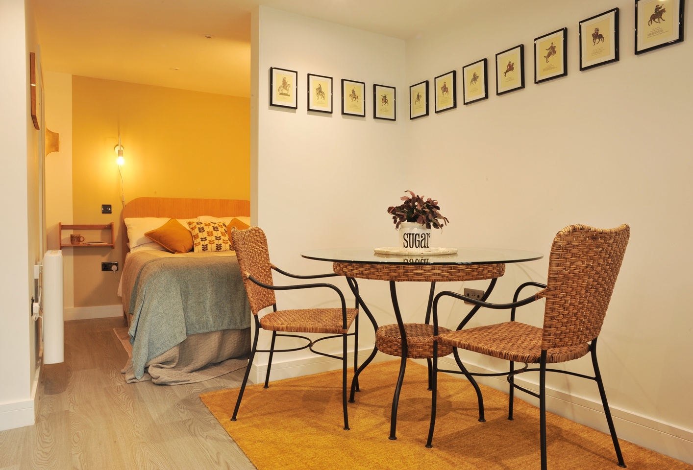 comfortable studio bedroom, furnished to a high standard
