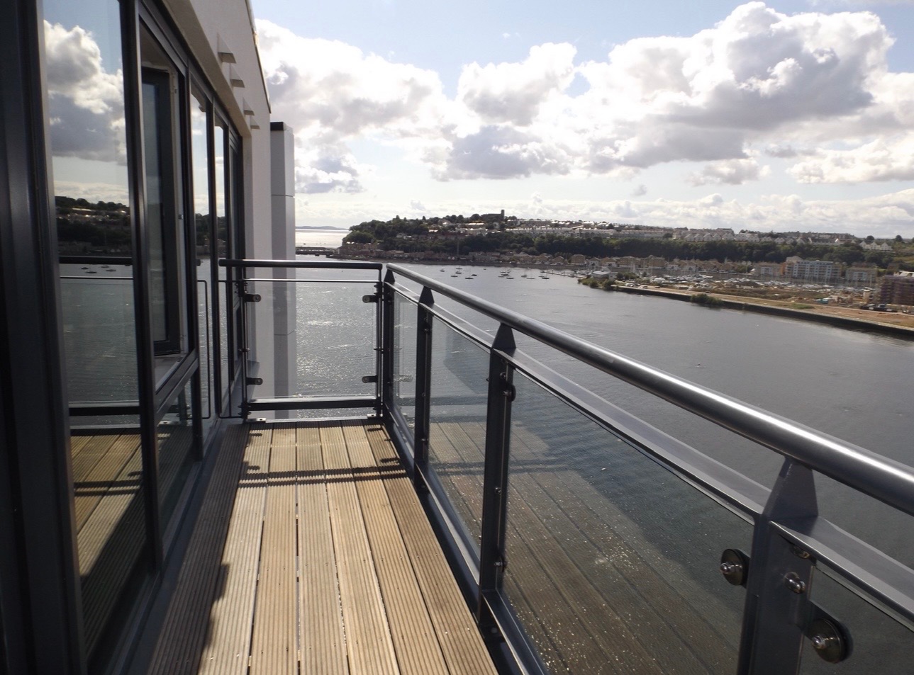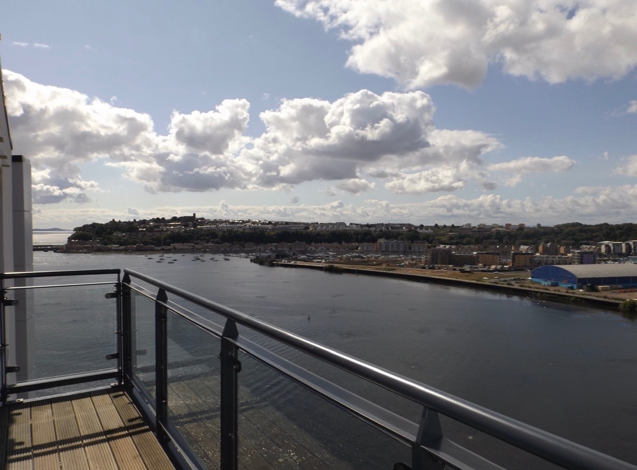 The open plan living room and modern fitted kitchen benefit from floor to ceiling windows which give sunny stunning views over Penarth barrage, Penarth and islands flatholm and steepholm in the Severn estuary.