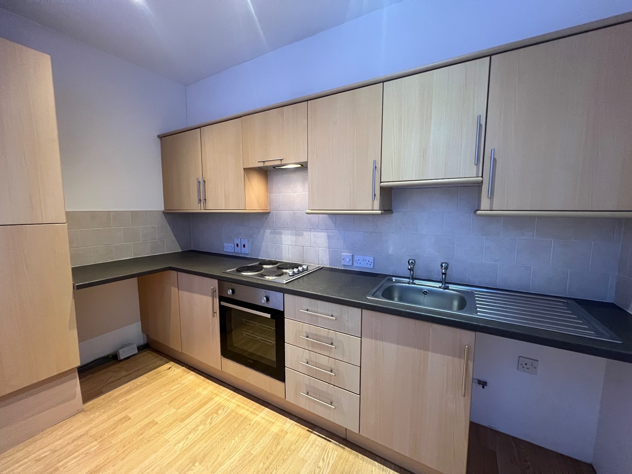 Modern 1-bed flat with open-plan living, spacious lounge, and fully equipped kitchen. Ideal central location – perfect for professionals or couples.