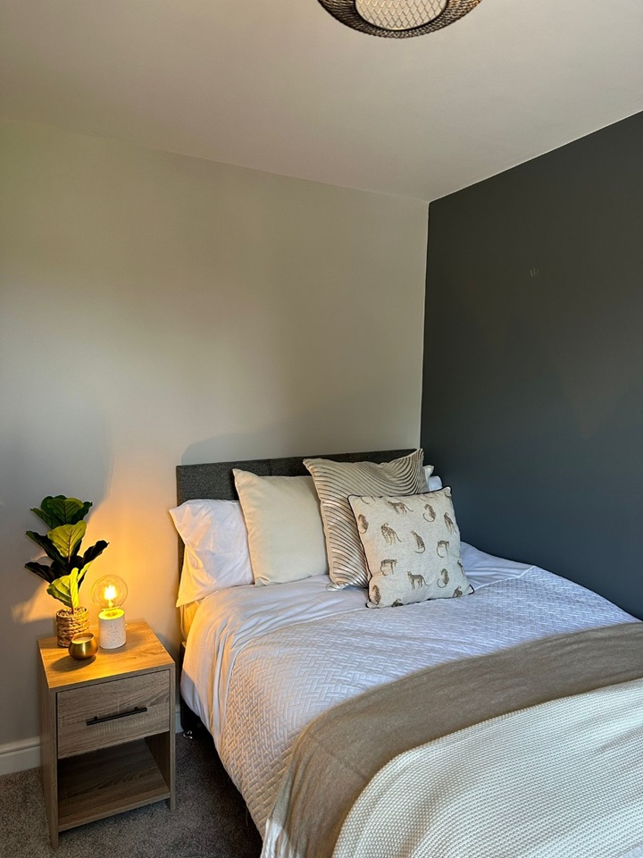 The available bedroom comes fully furnished including; a wardrobe, chest of drawers, a double bed with a bed side table, a two-seater settee, an en-suite bathroom with a toilet, shower and sink.