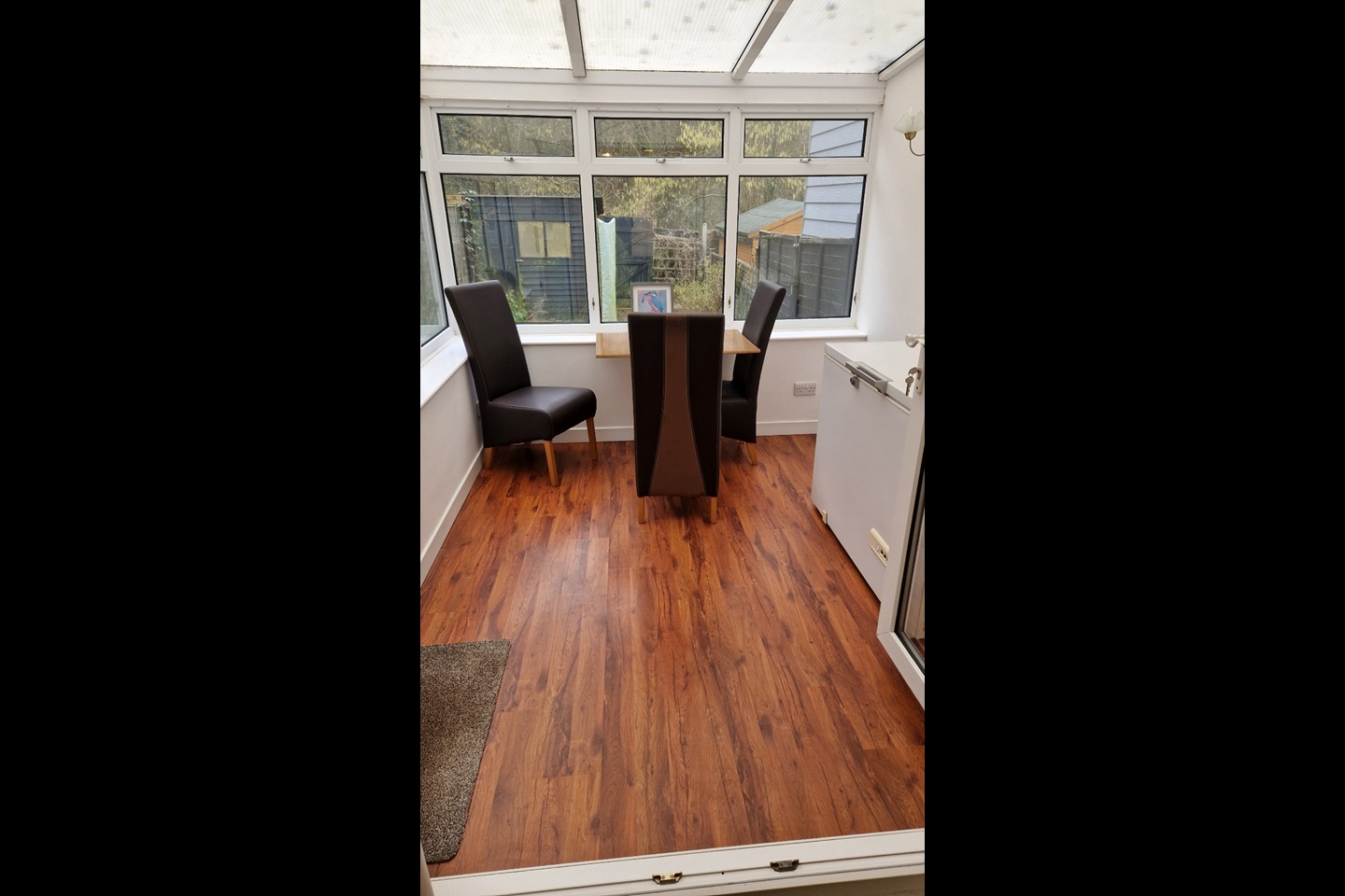 Downstairs kitchen, Livingroom, conservatory and small garden.
