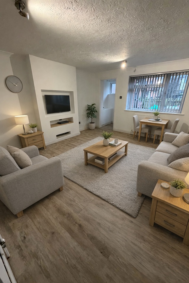 Inside, the property features a bright and welcoming living space, a well-proportioned kitchen, and two comfortable bedrooms, making it well suited for professionals, couples or small families.