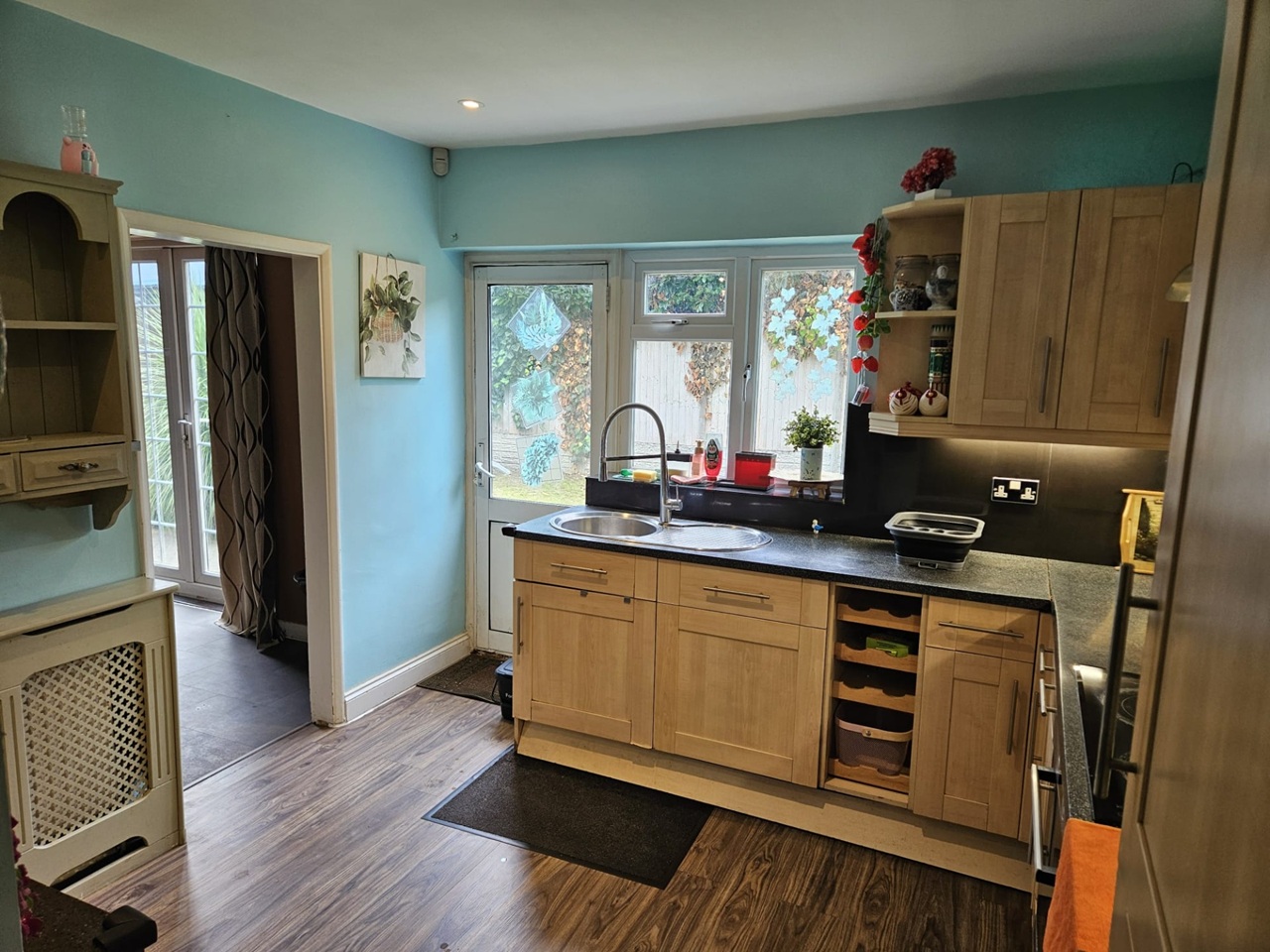 Sat upon a wide plot, this four-bedroom house boasts brilliant internal space. The ground floor comprises two great sized bedrooms, a family bathroom, a spacious dining room, large kitchen and an expansive family lounge all with access to a great sized garden. Upstairs you will find a family bathroom, a large double bedroom and one single bedroom/office.