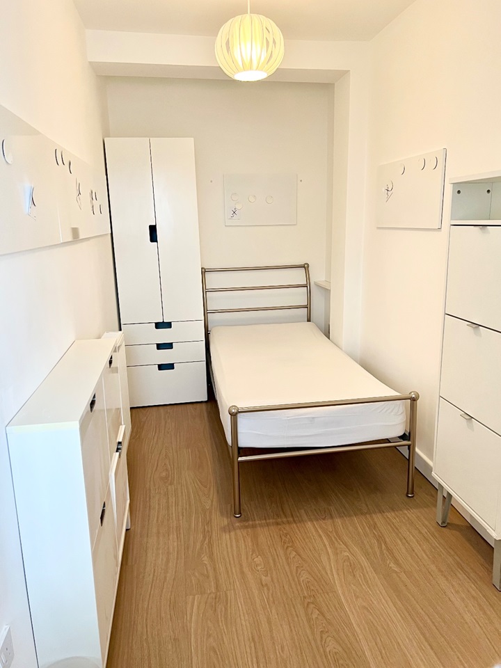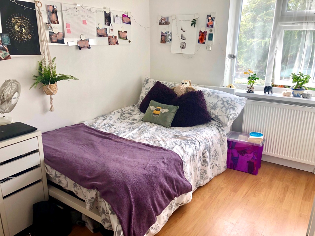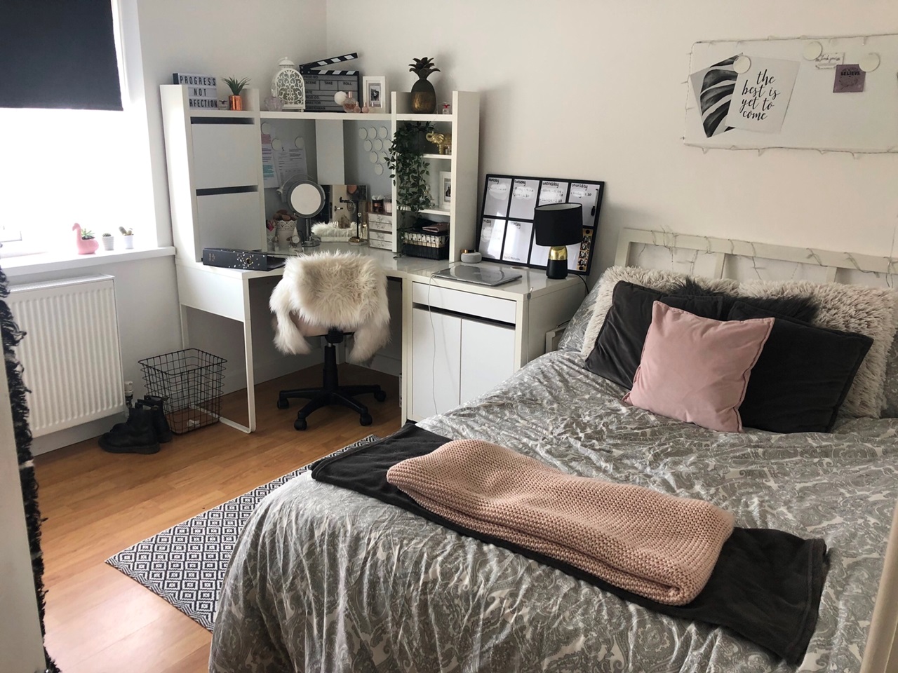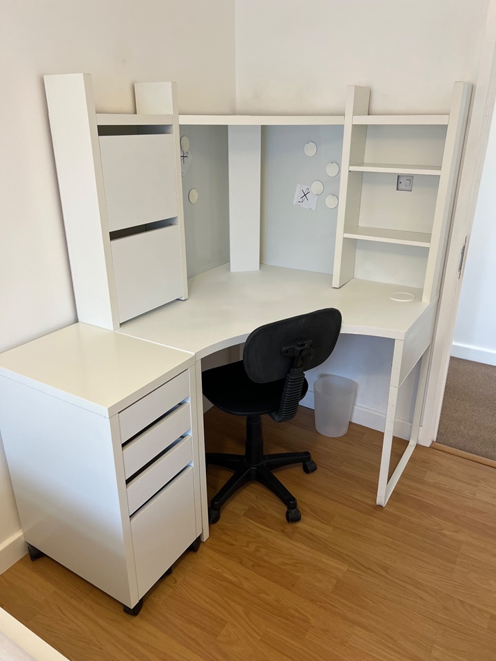 BEDROOMS - These are fully furnished. The 2 single rooms have single beds & the 3 double rooms have small double beds. The rooms are modern and white with oak laminate flooring and white furniture including desks with storage shelves, study chair, wardrobe, chests of drawers, full length mirror and magnet boards. Each room has a separately controlled radiator, so you can adjust each room's heating to your liking. All rooms have A grade Double Glazed Windows.