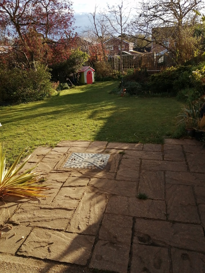 85 feet south facing established rear garden with several trees and shrubs including a cherry tree, roses, lilac, and two beautiful wisterias , a small pond, patio, and shed. There is also a 4m x 4m netted allotment area.