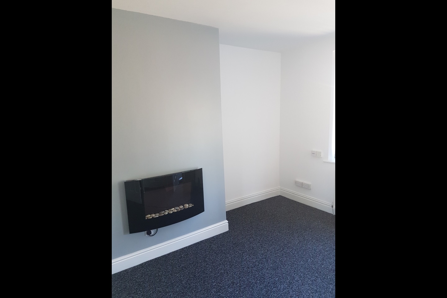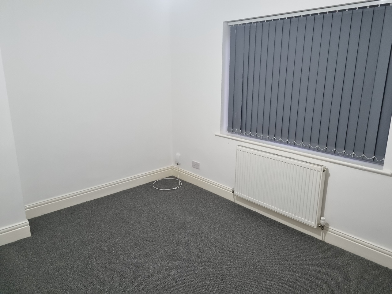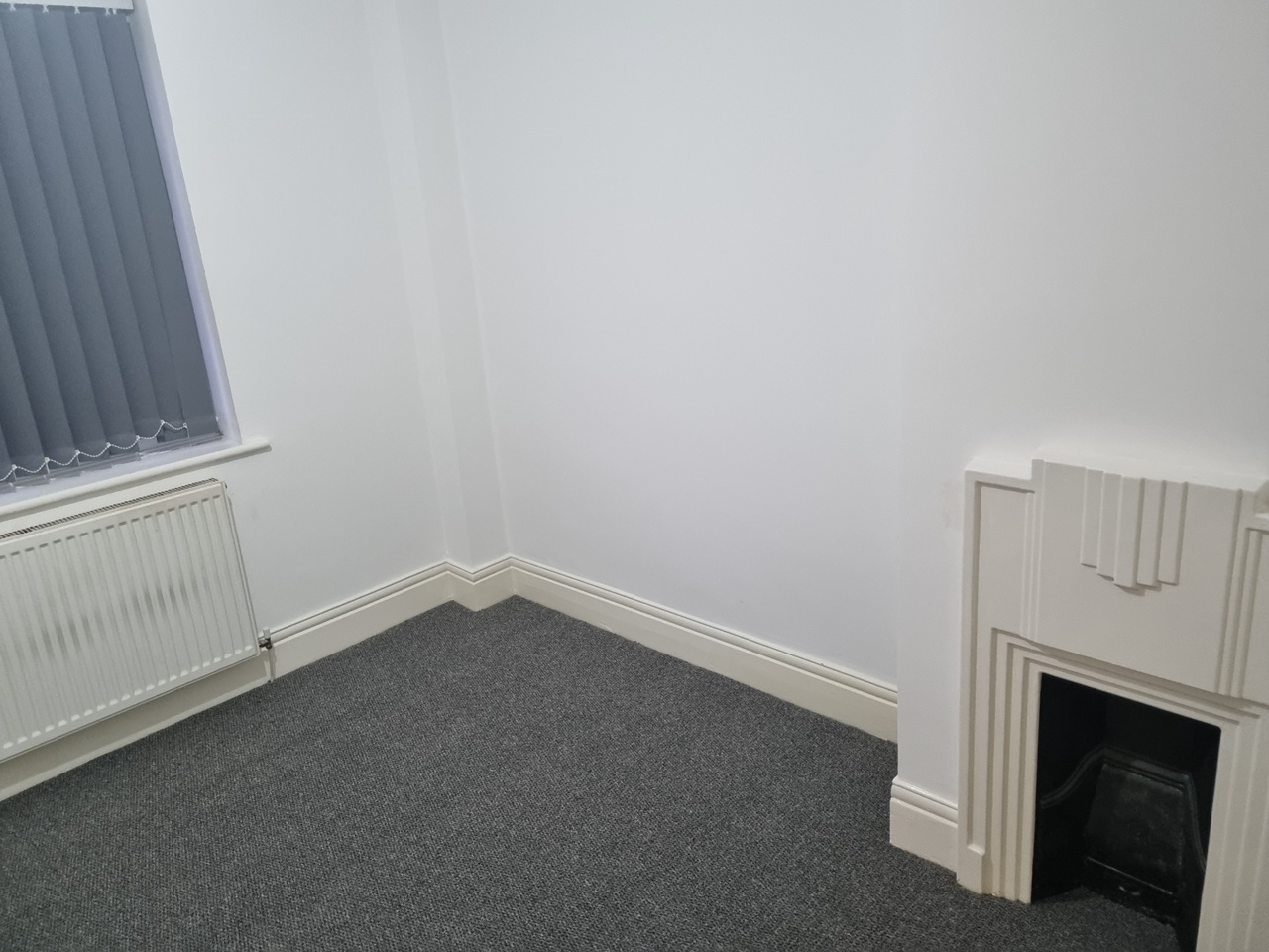 large living room new fully carpeted throughout, stylish blinds.